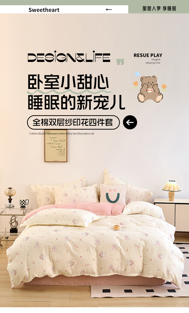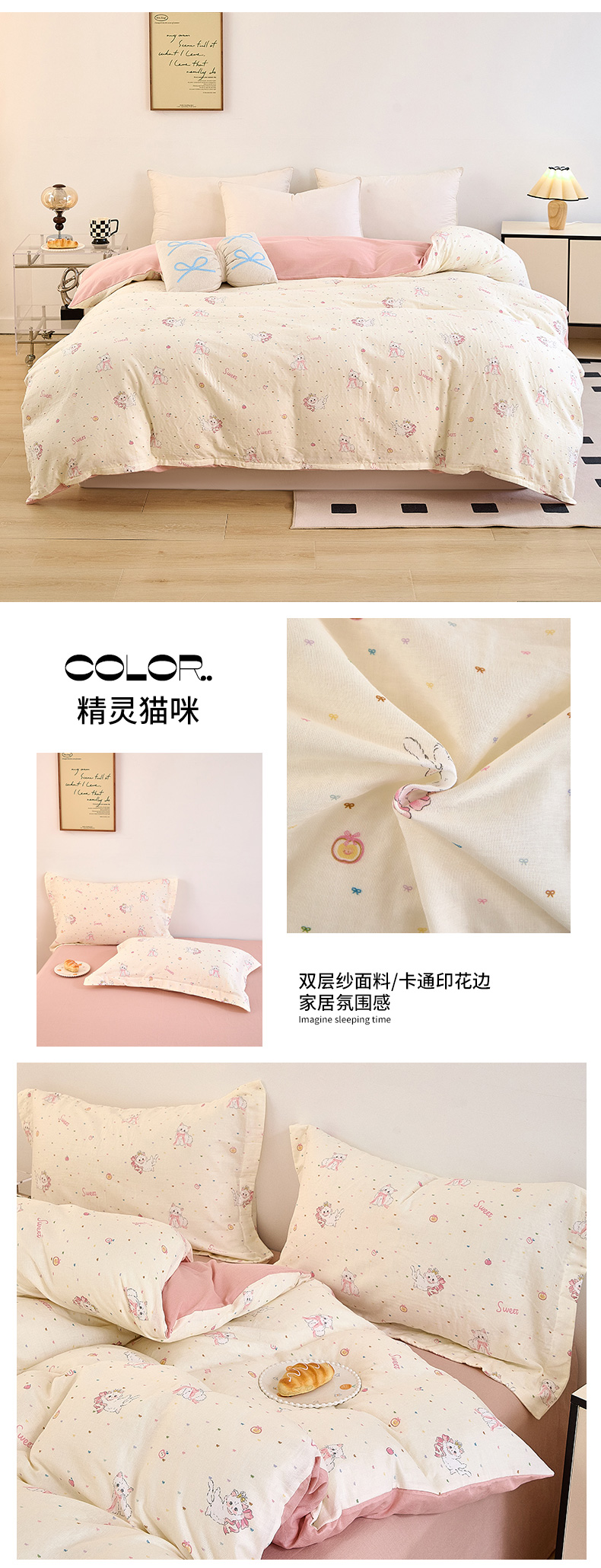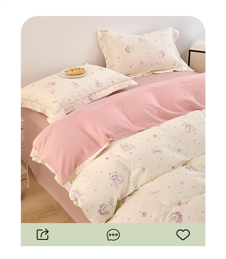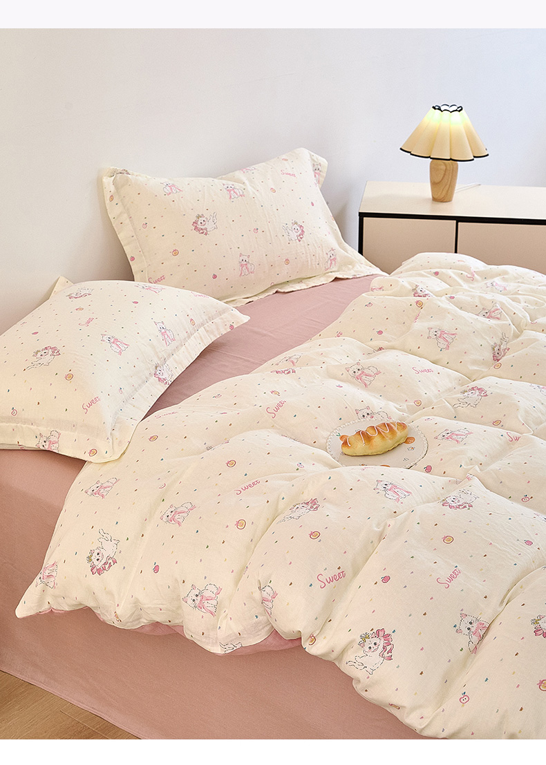 当前位置: 91家纺网 > 商品网购 > 床品套件 > 四件套 > 全棉普通四件套 > 2025新款全棉双层纱印花四件套(第二批)精灵猫咪
