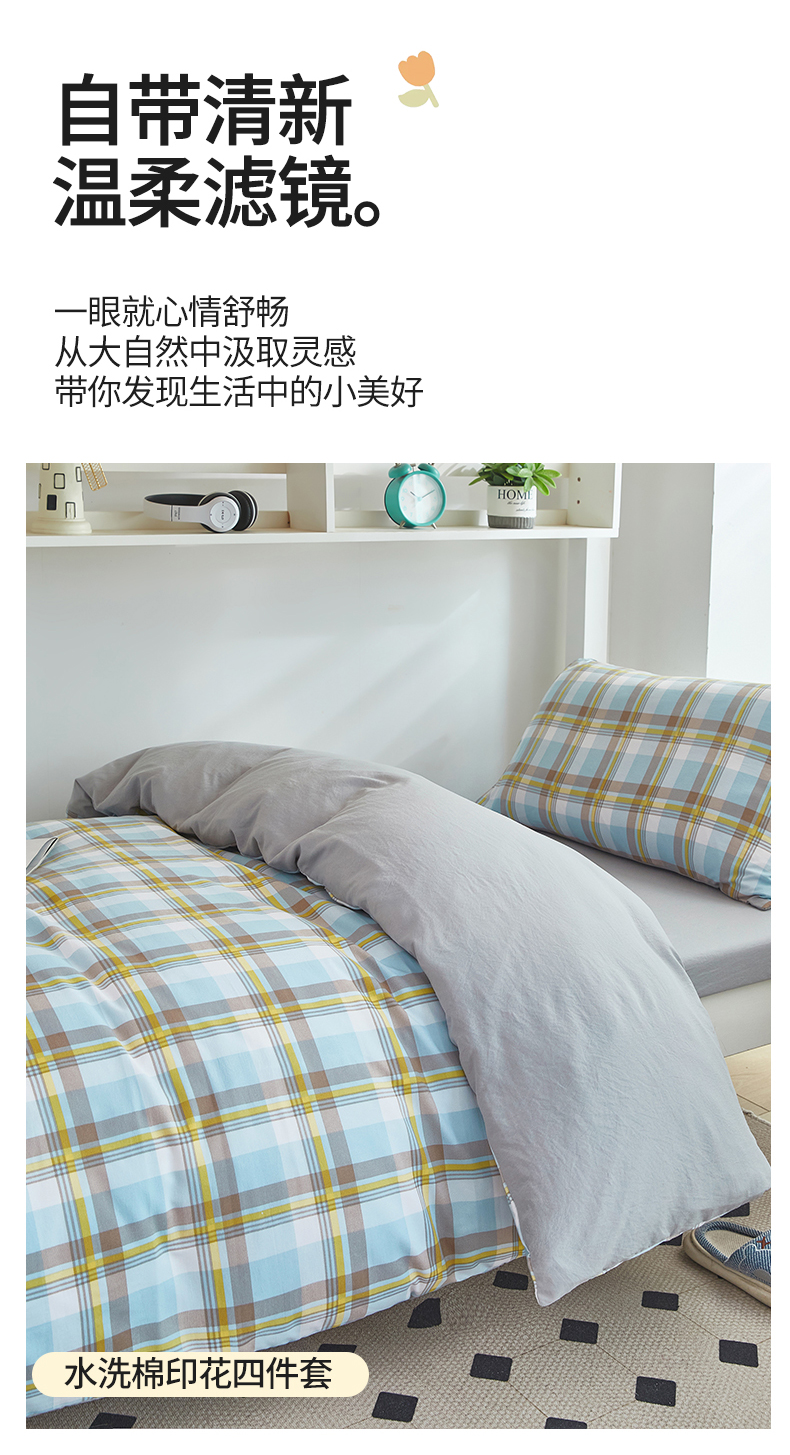 商品名称:(总)恒科家纺 2025新款亲肤舒适小清新水洗棉四件套学生六件套-学生款宿舍六件套