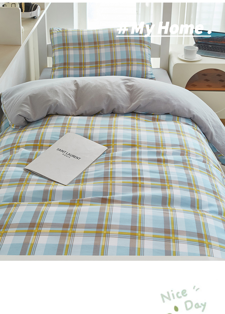 (总)恒科家纺 2025新款亲肤舒适小清新水洗棉四件套学生三件套-学生款宿舍三件套,格韵粉,蜜粉格,莫妮粉,莫妮兰,品格