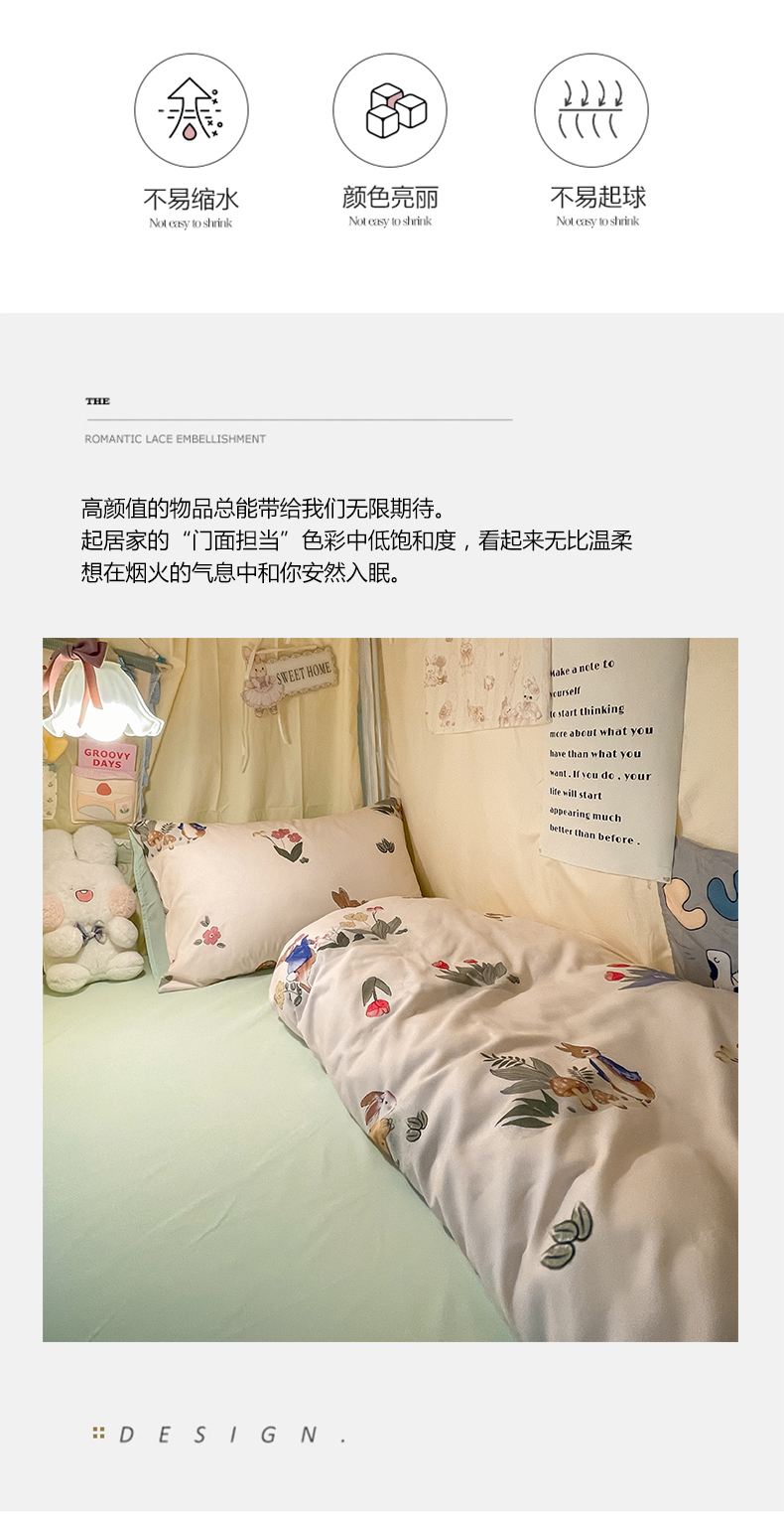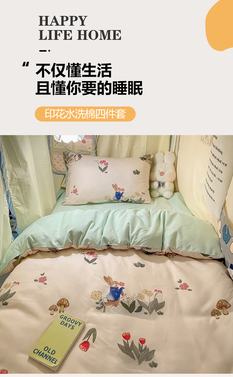 当前位置: 91家纺网 > 商品网购 > 床品套件 > 三件套 > 爱彼家纺 2025新款卡通印花水洗棉学生宿舍三件套上下铺三件套 蘑菇与兔