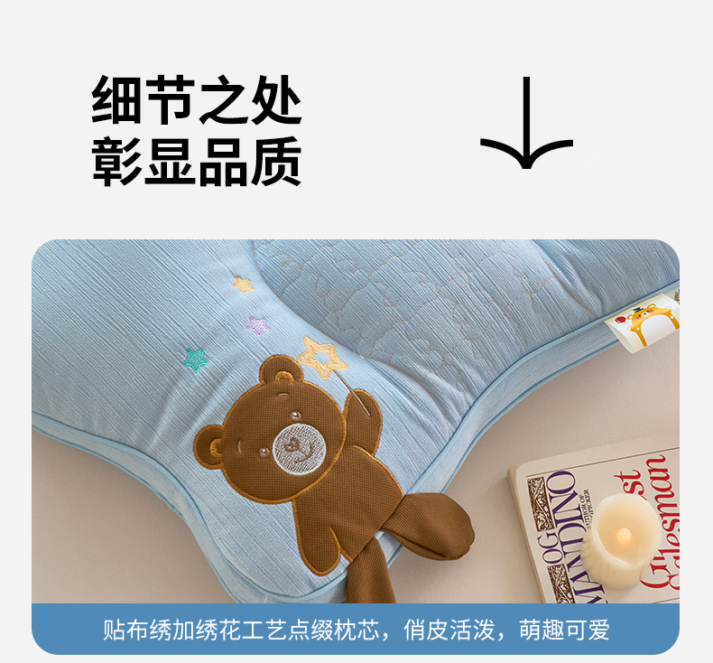 商品名称:(总)鼎晟纺 2025新款小熊贴布绣儿童枕护颈枕头枕芯