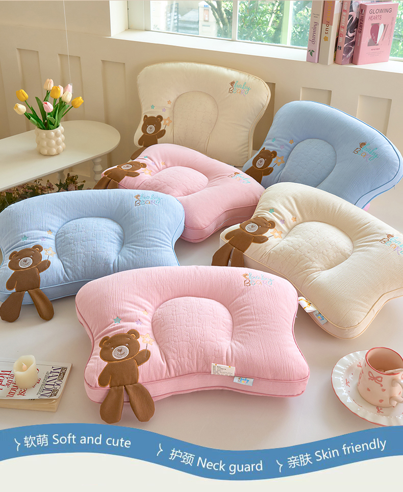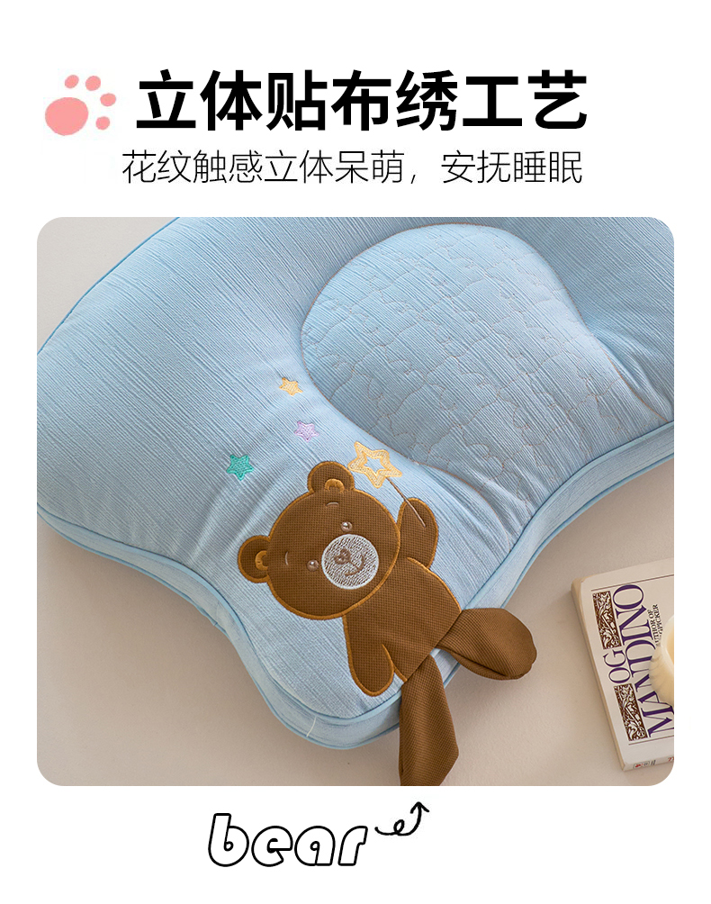 (总)鼎晟纺 2025新款小熊贴布绣儿童枕护颈枕头枕芯
