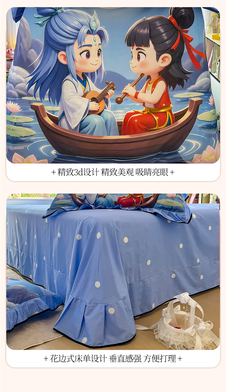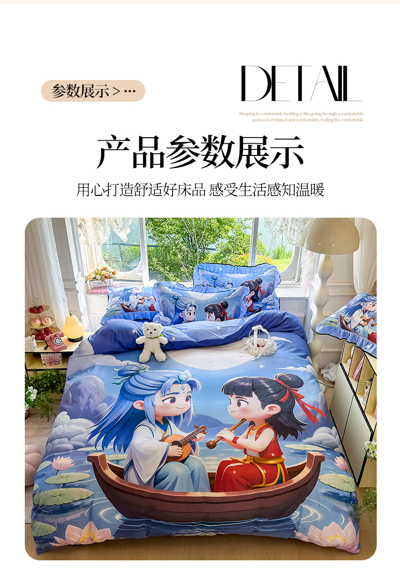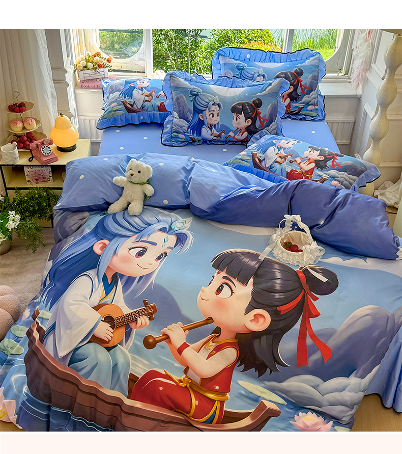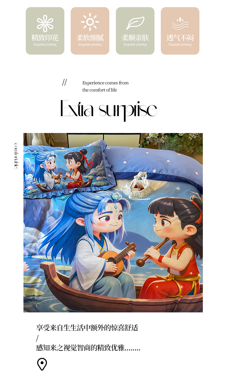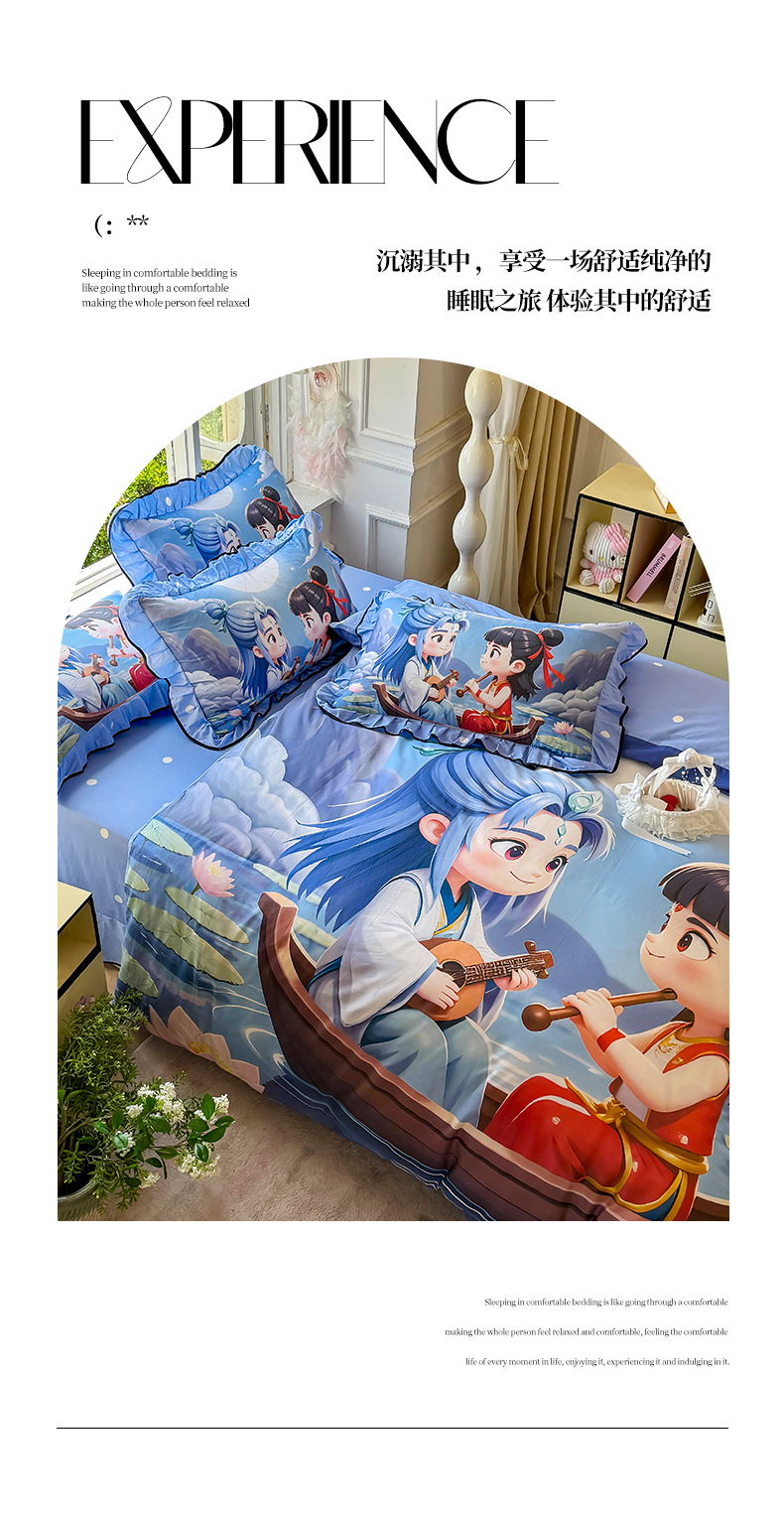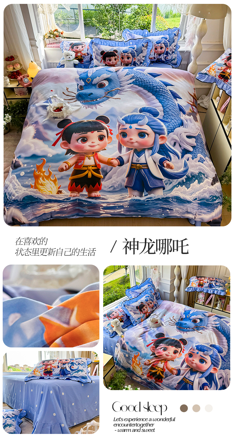 商品名称:馨语家居 2025新款A类全棉3D大版印花四件套 神龙哪吒