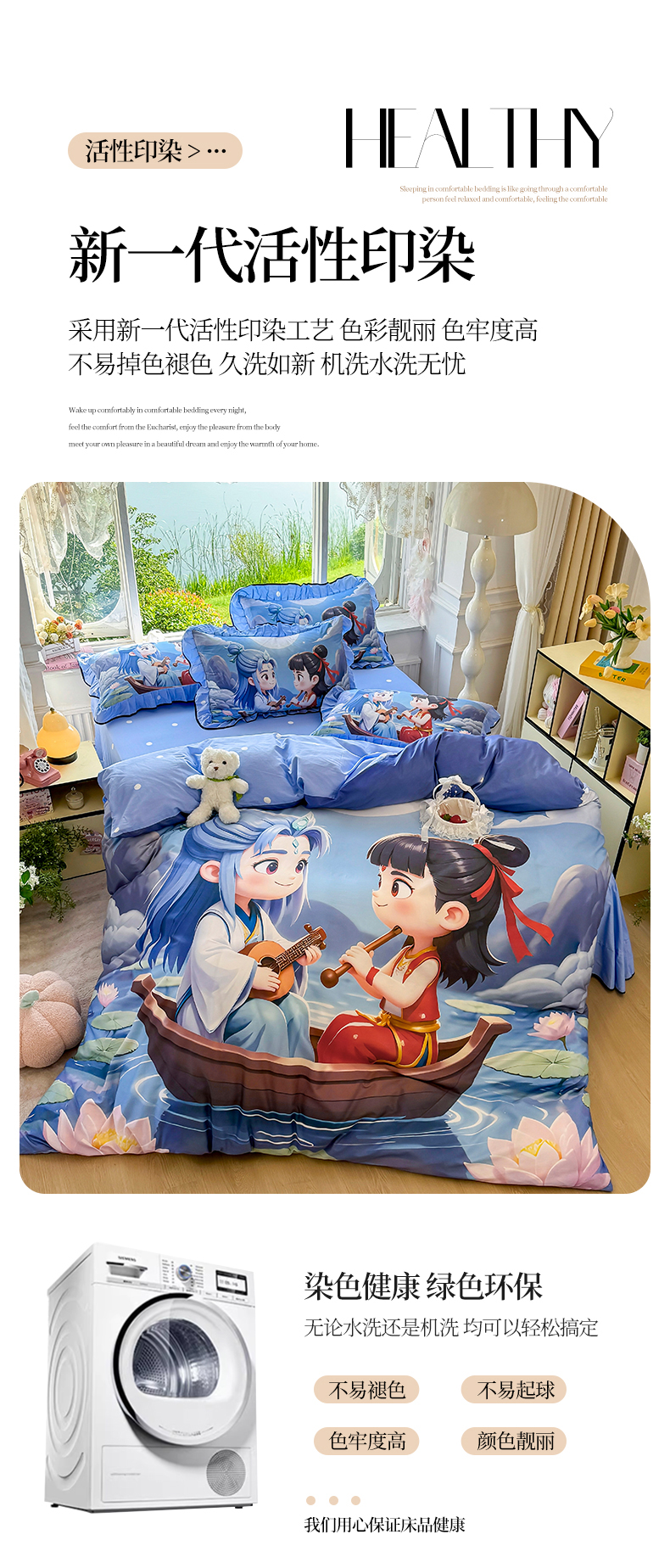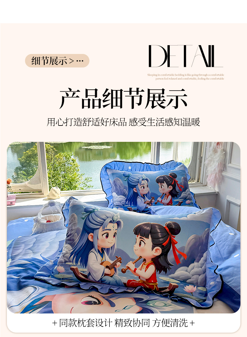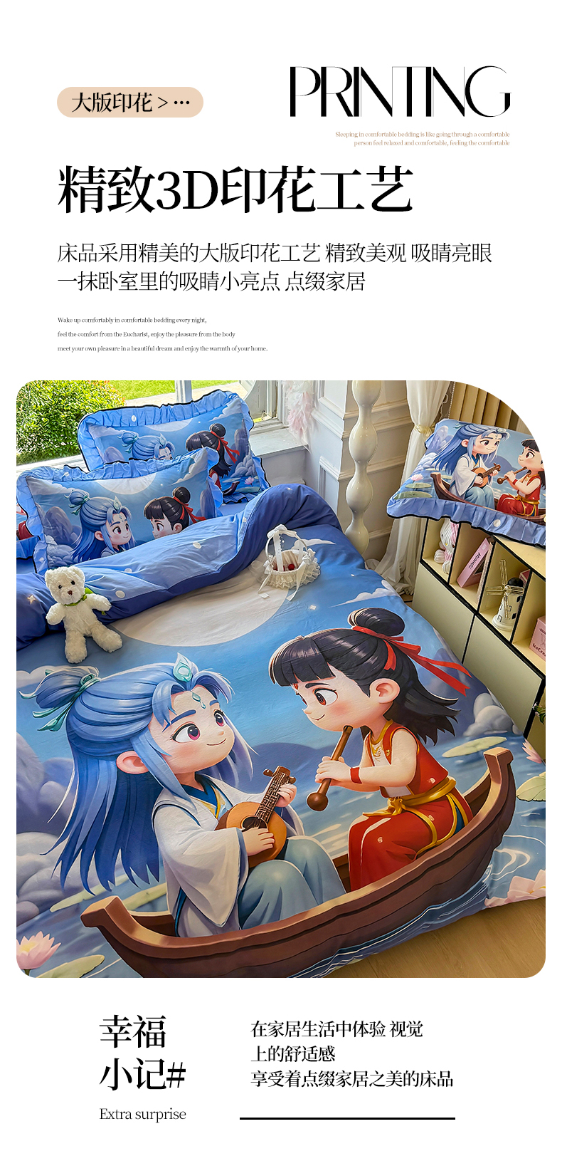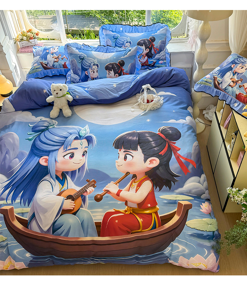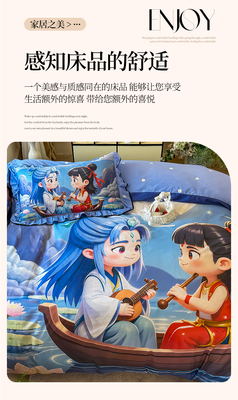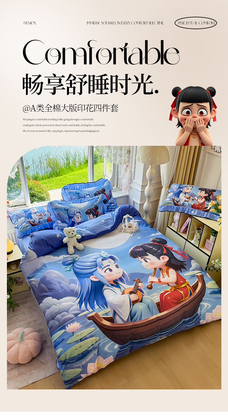 商品名称:馨语家居 2025新款A类全棉3D大版印花四件套 神龙哪吒