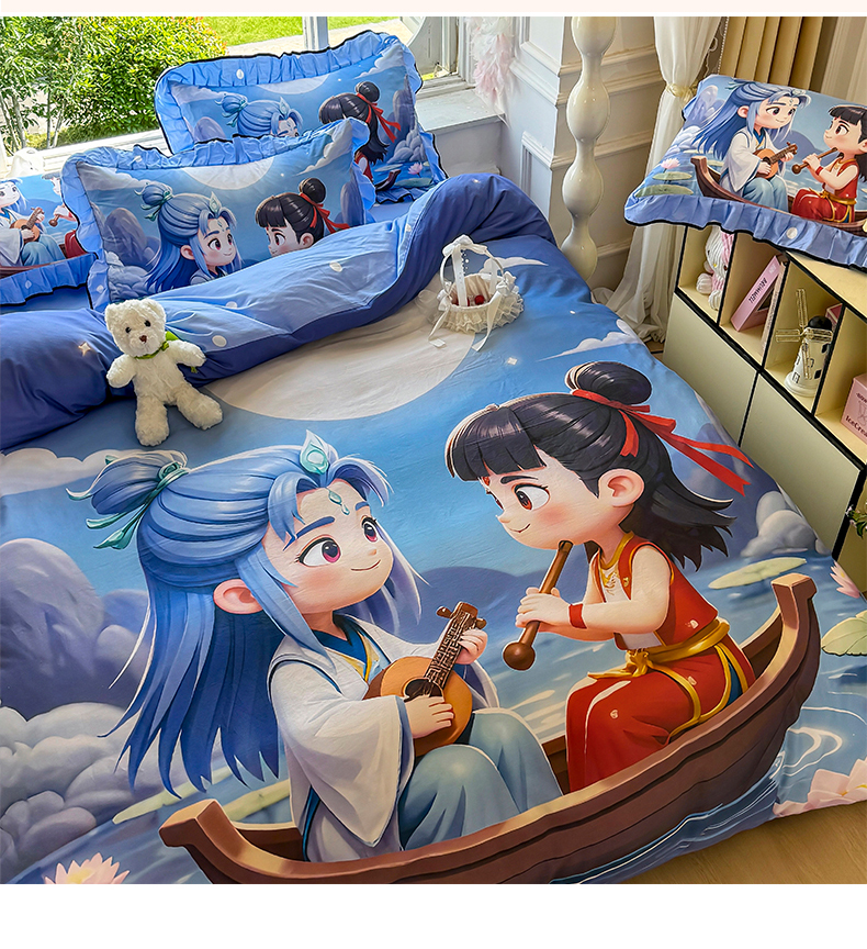 馨语家居 2025新款A类全棉3D大版印花四件套 神龙哪吒