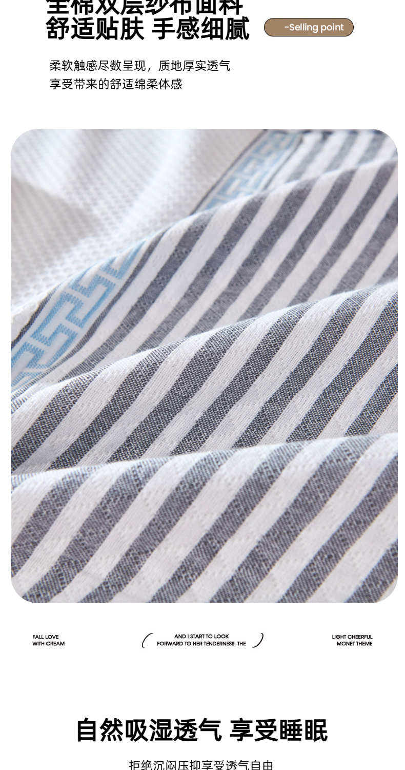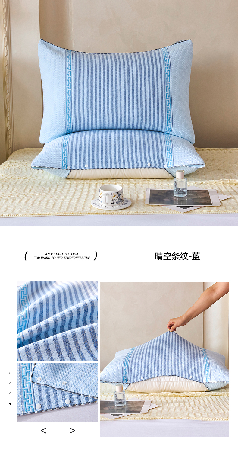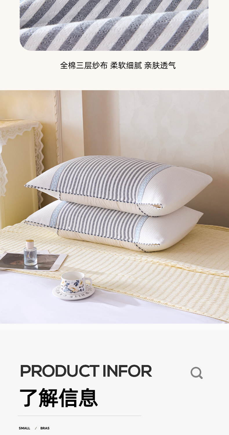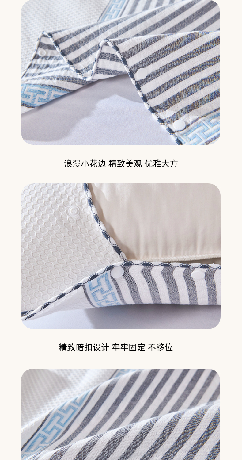 商品名称:悦然毛巾被 2025新款全棉纯棉纱布多功能枕巾枕套带扣子 晴空条纹灰