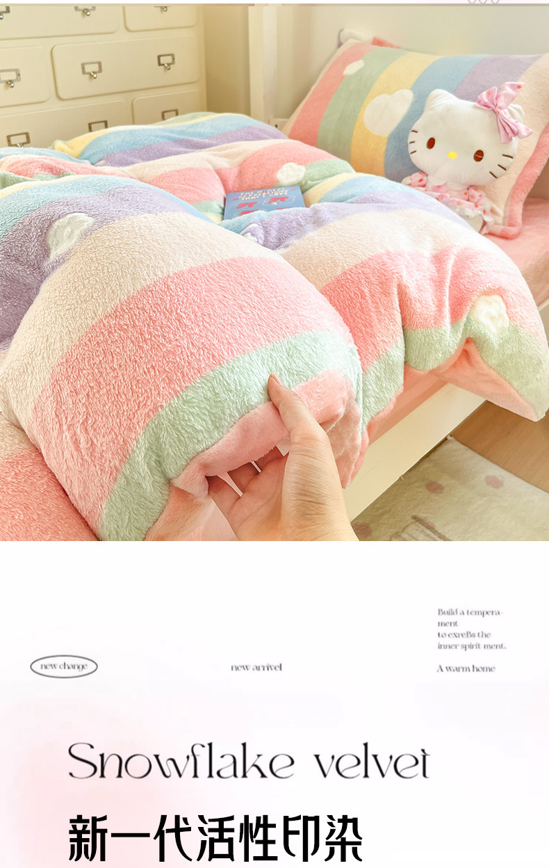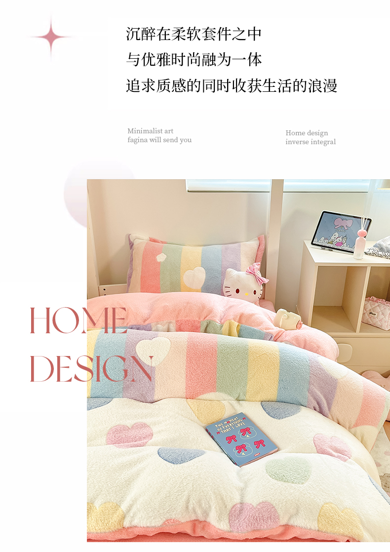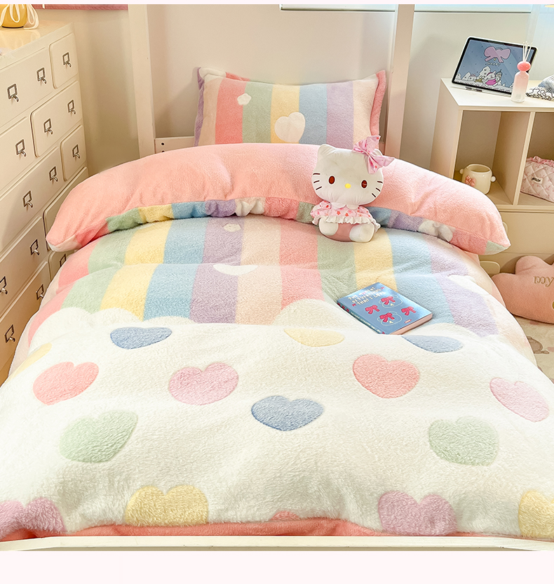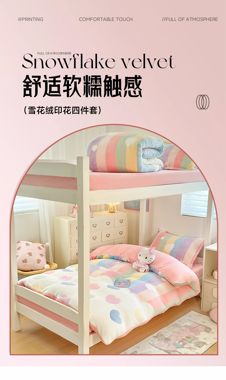 当前位置: 91家纺网 > 商品网购 > 床品套件 > 四件套 > 其它四件套 > 川悦生活 2025新款立体雪花绒印花四件套学生床系列一场景一 彩虹爱心粉