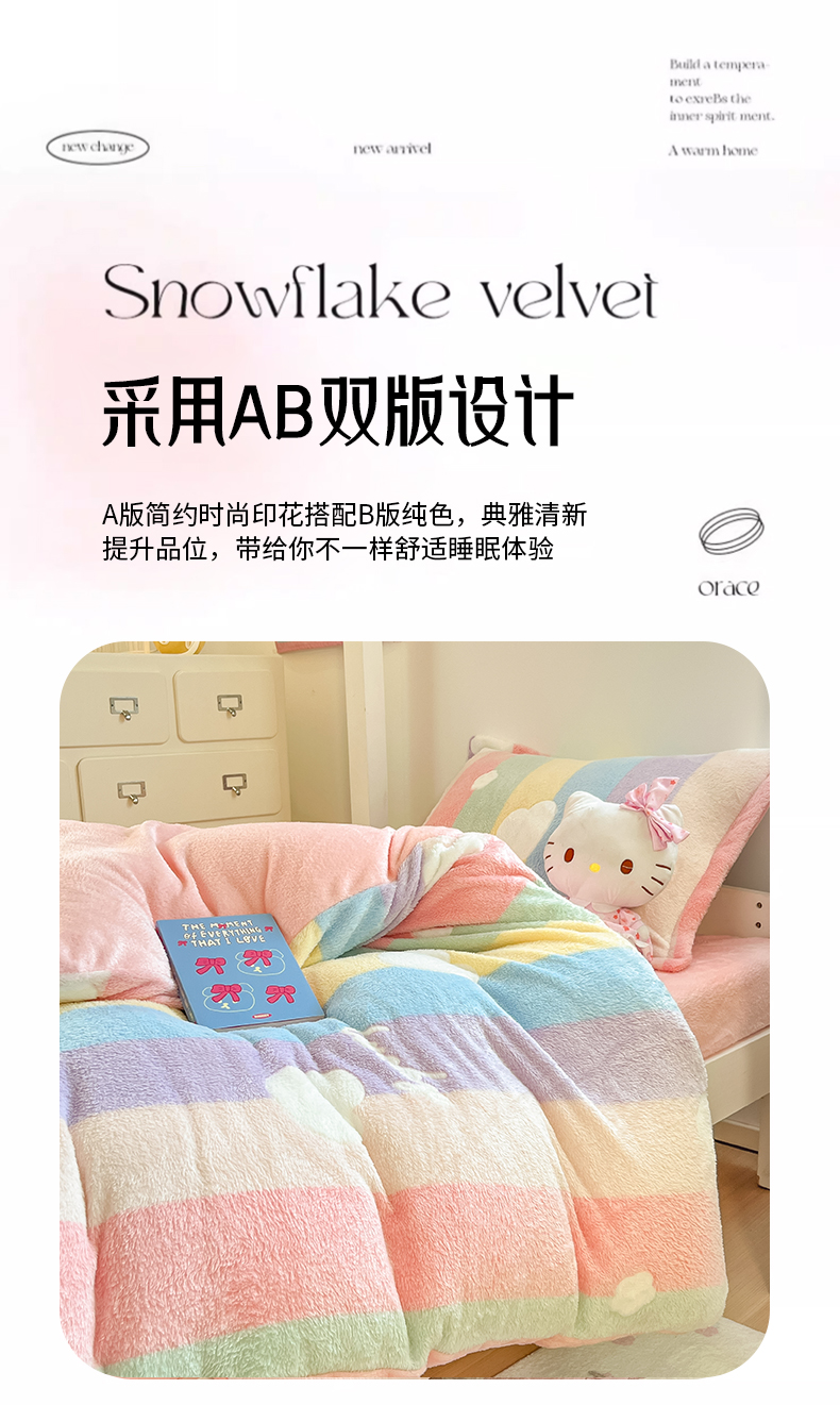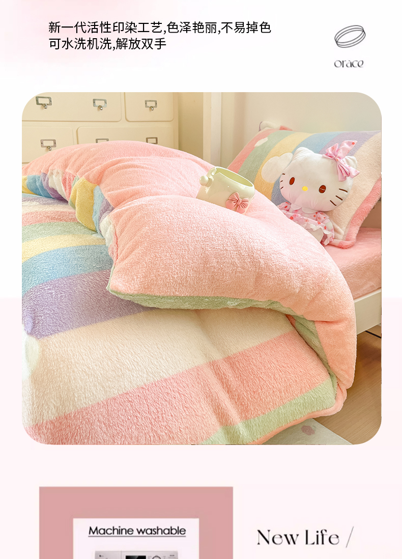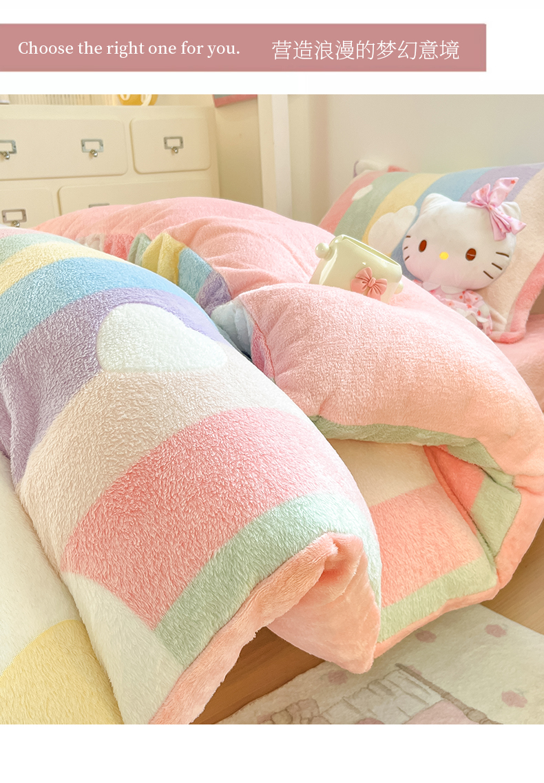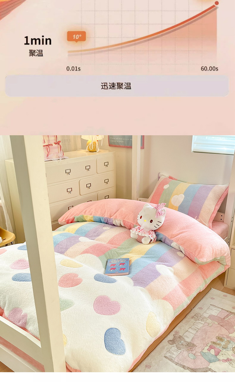 当前位置: 91家纺网 > 商品网购 > 床品套件 > 四件套 > 其它四件套 > 川悦生活 2025新款立体雪花绒印花四件套学生床系列一场景一 彩虹爱心粉