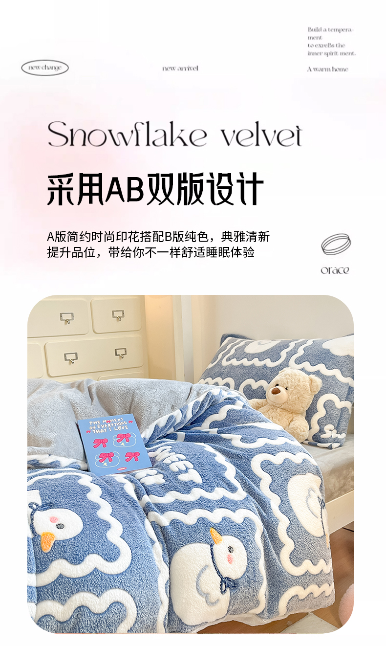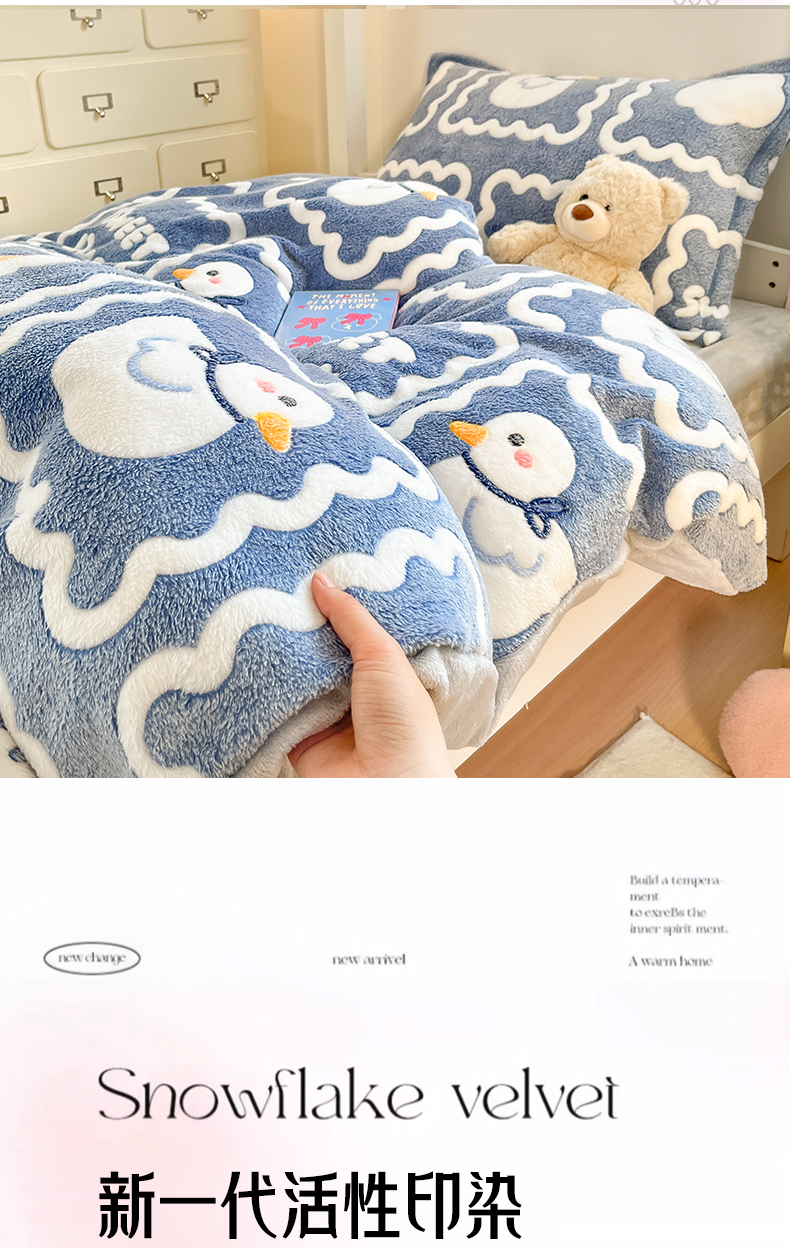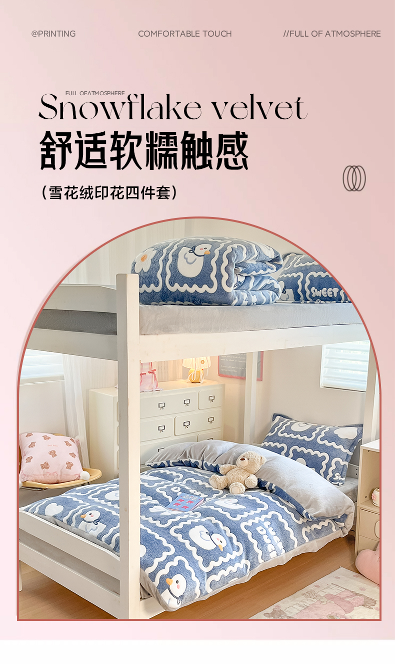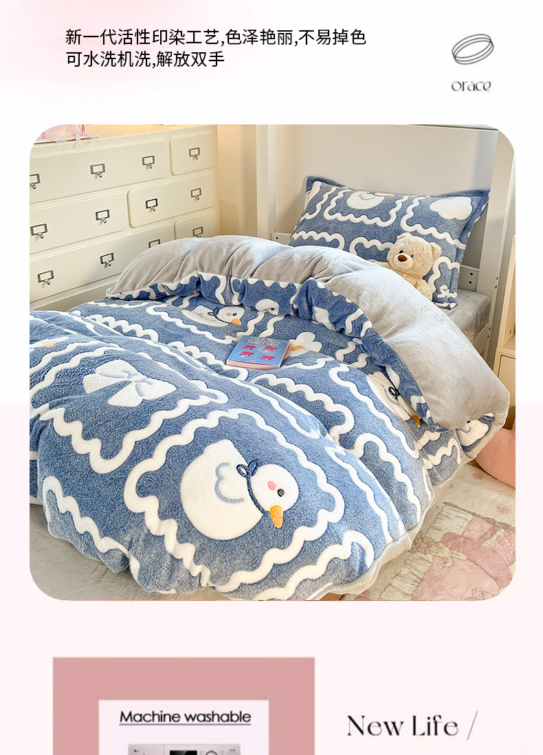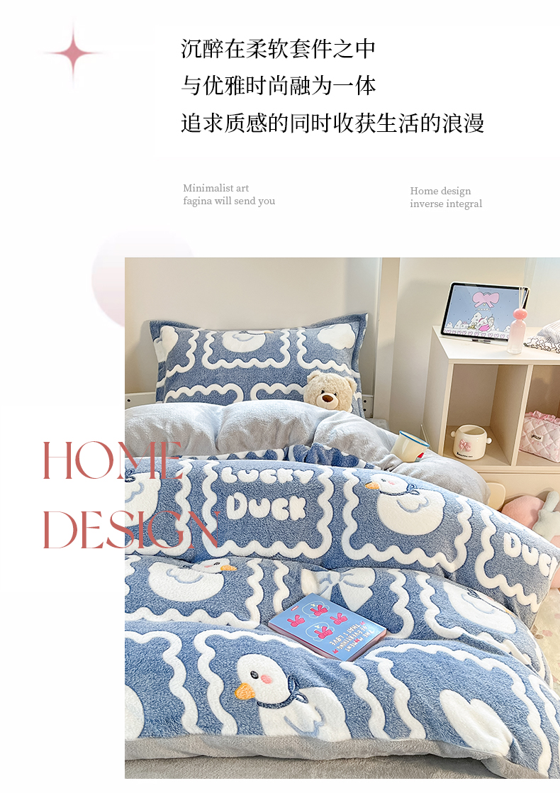 当前位置: 91家纺网 > 商品网购 > 床品套件 > 四件套 > 其它四件套 > 川悦生活 2025新款立体雪花绒印花四件套学生床系列一场景一 快乐鸭鸭