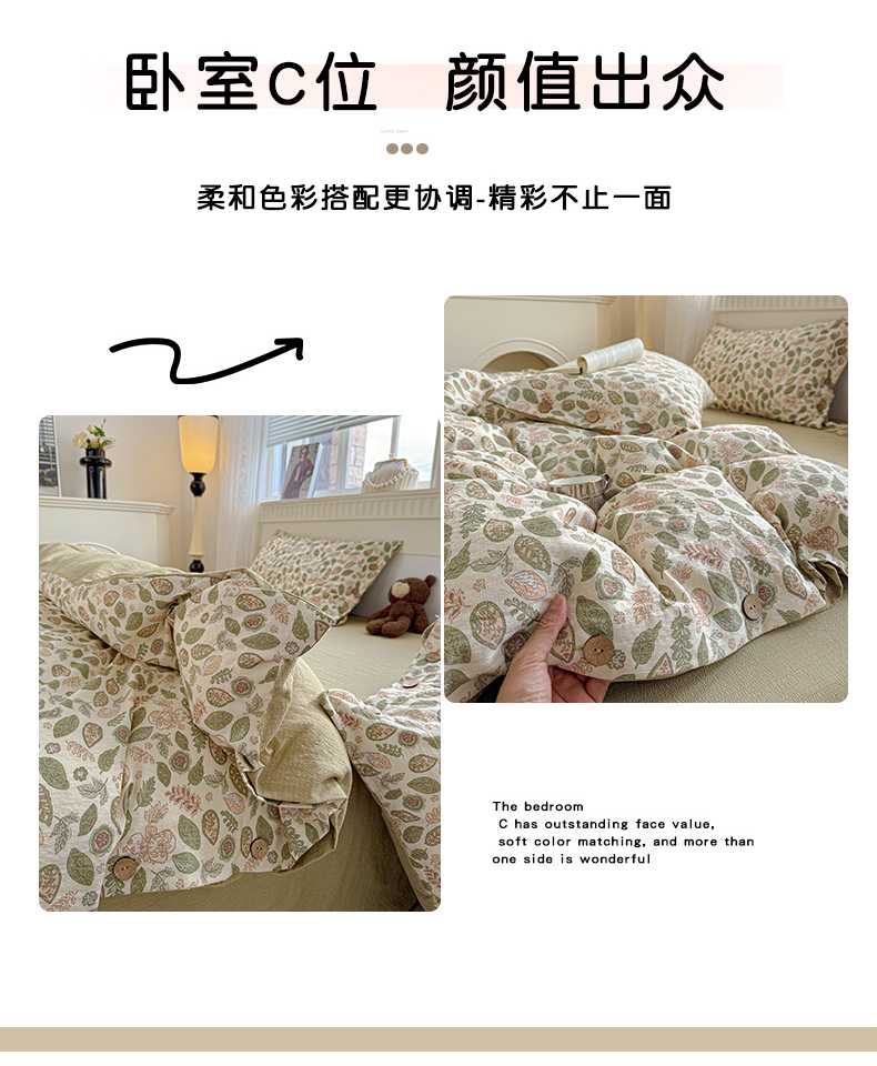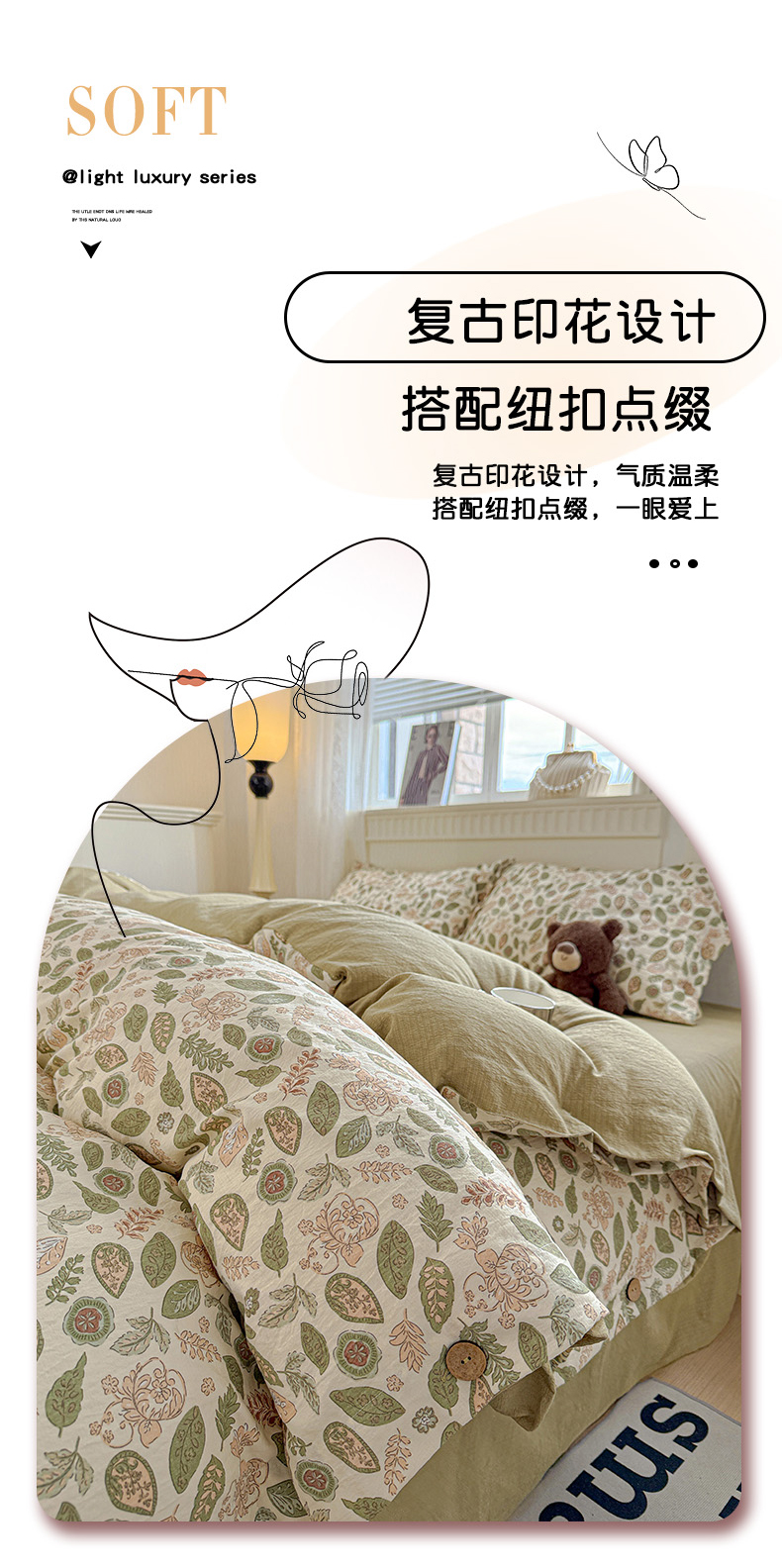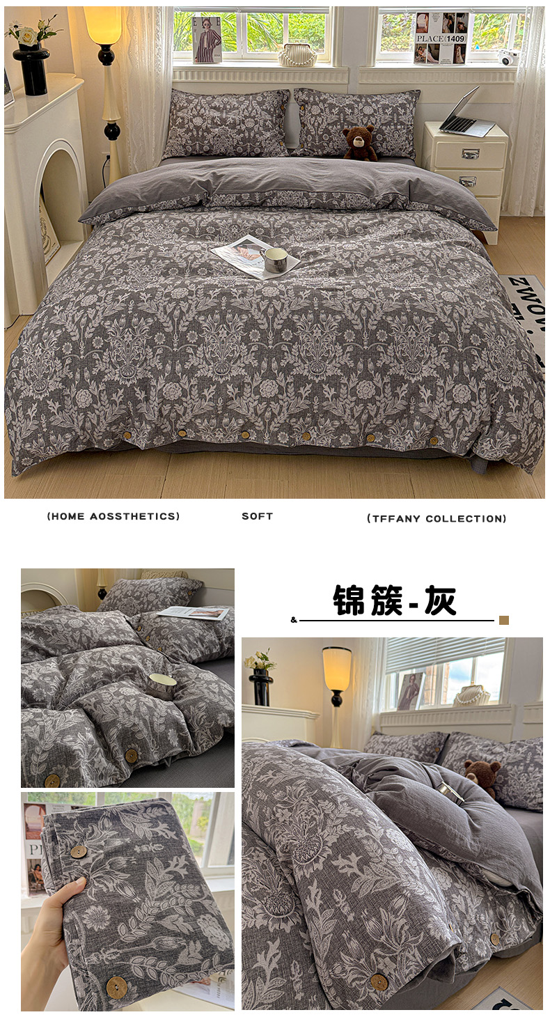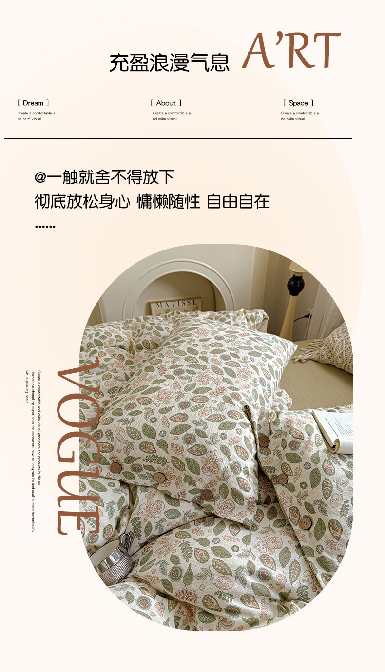 当前位置: 91家纺网 > 商品网购 > 床品套件 > 四件套 > 其它四件套 > 水墨江南 2025新款原麻复古印花纽扣款四件套 叶羽