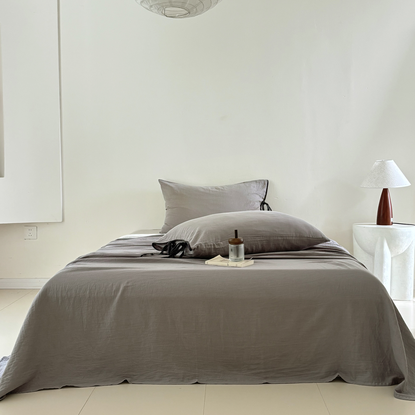 FORTWO家纺原创设计(FOR TWO家纺) 2025新款40支双层纱撞色包边蝴蝶结款单床单-海盐 海盐-蜜豆绿黄