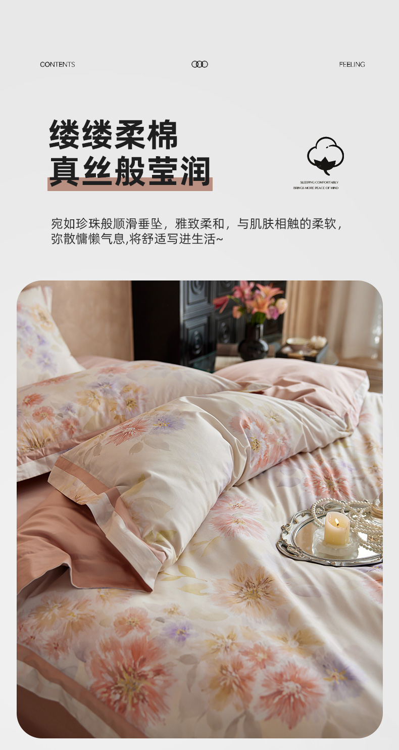 当前位置: 91家纺网 > 商品网购 > 床品套件 > 四件套 > 长绒棉四件套 > 轩和家居 2025新款轻奢A类70S长绒棉纯棉印花四件套-第二组 烟洛