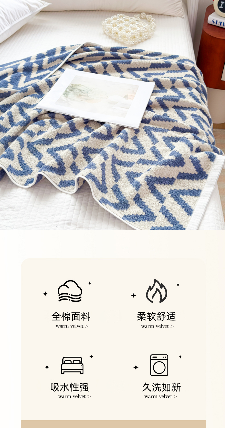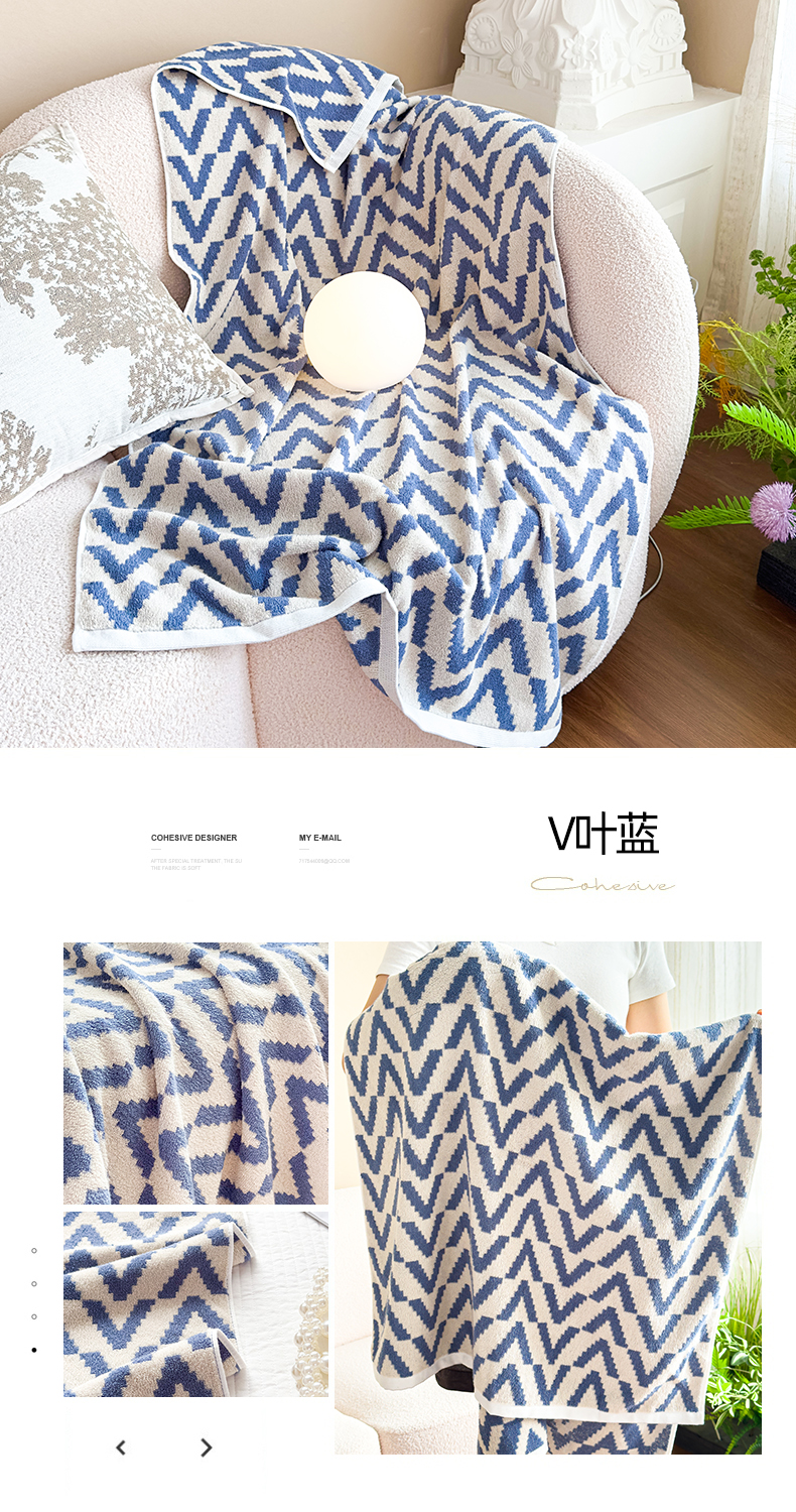 当前位置: 91家纺网 > 商品网购 > 居家日用 > 毛巾/浴巾/浴袍 > 浴巾 > 悦然毛巾被 2025新款全棉毛圈浴巾盖毯 V叶蓝70*140