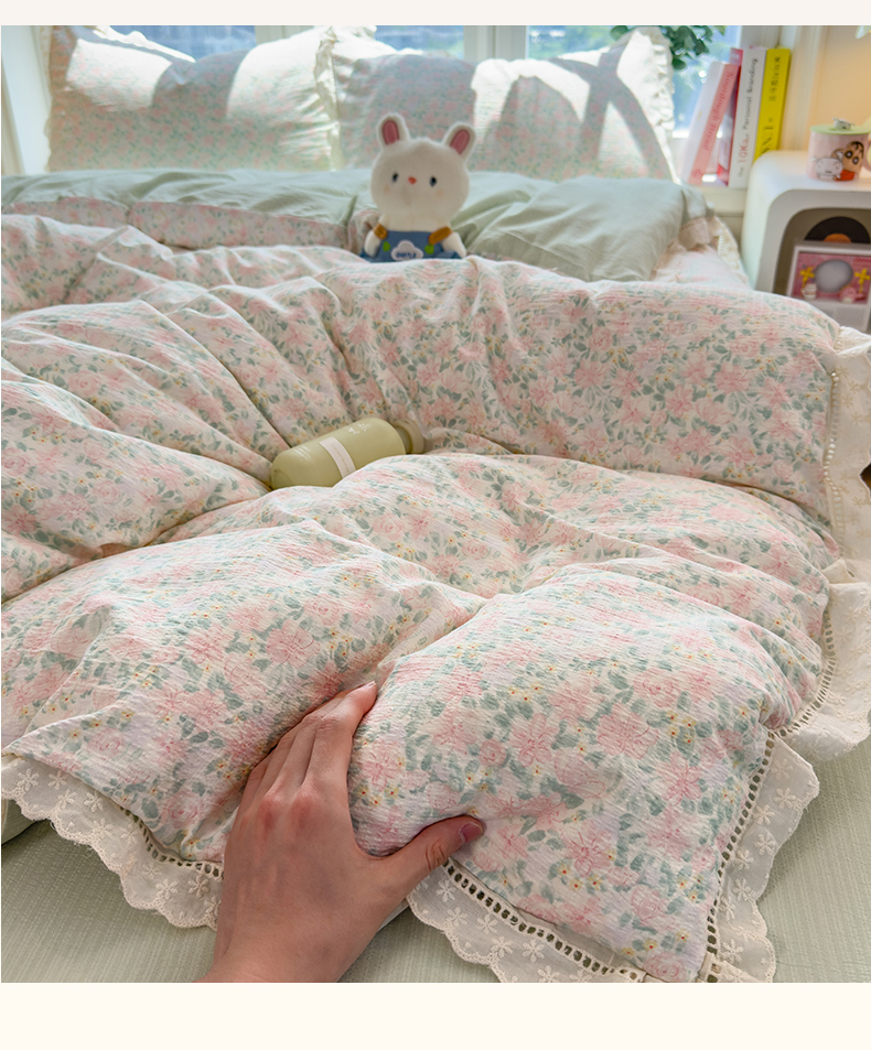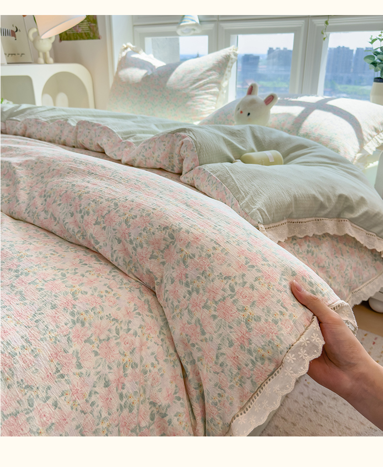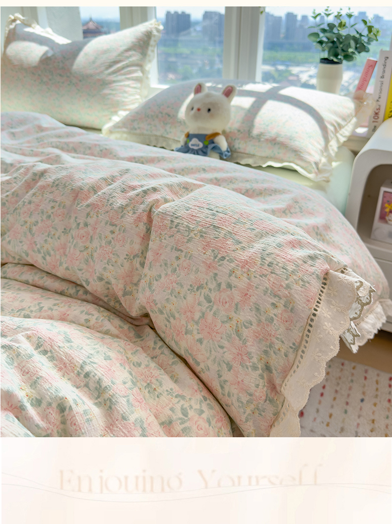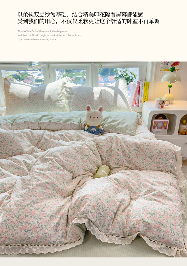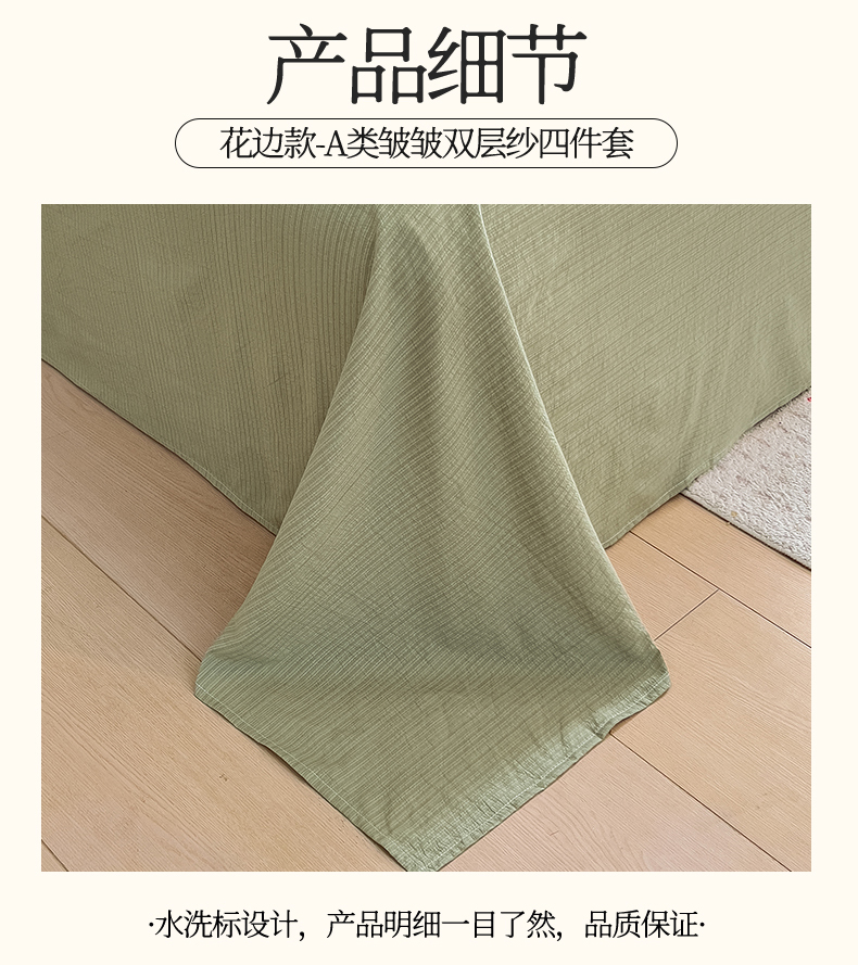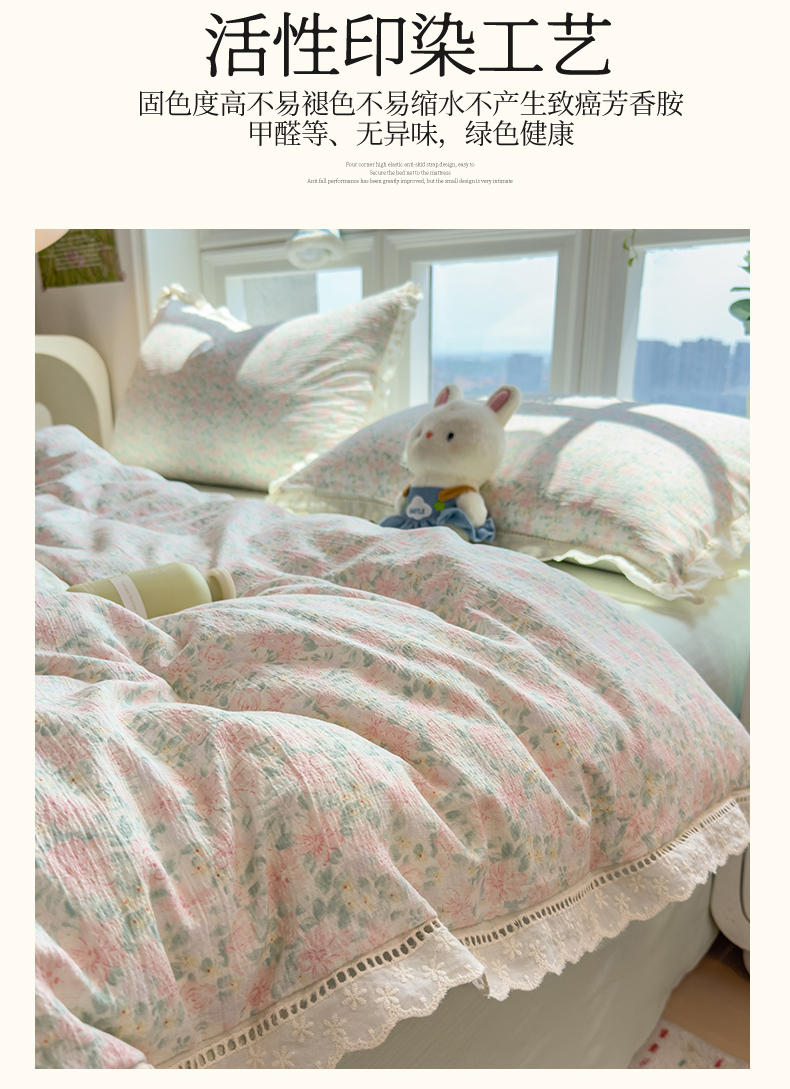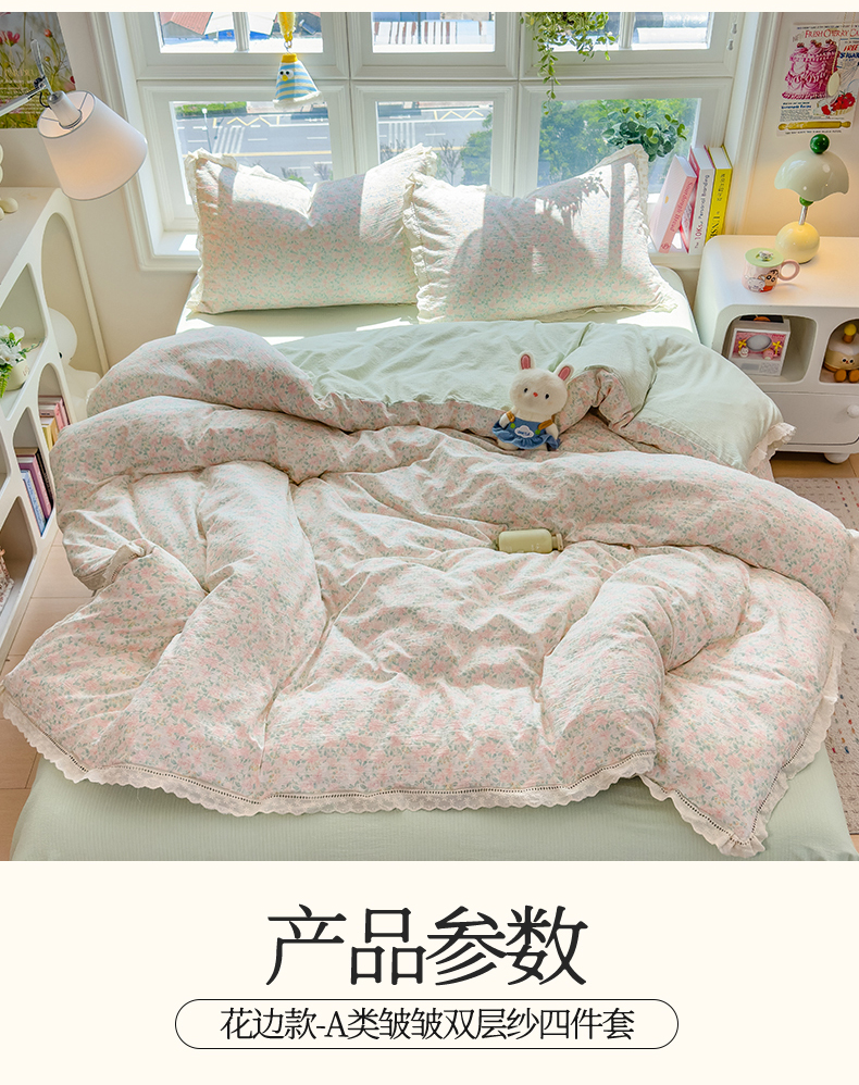 当前位置: 91家纺网 > 商品网购 > 床品套件 > 四件套 > 双层纱四件套 > 雯豆家纺2025新品皱皱双层纱四件套镂空花边款三件套 爱尔蓝