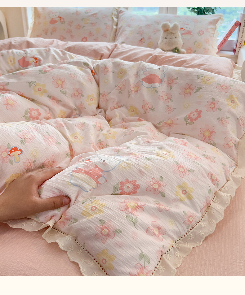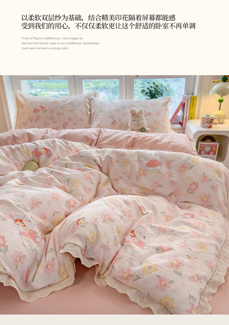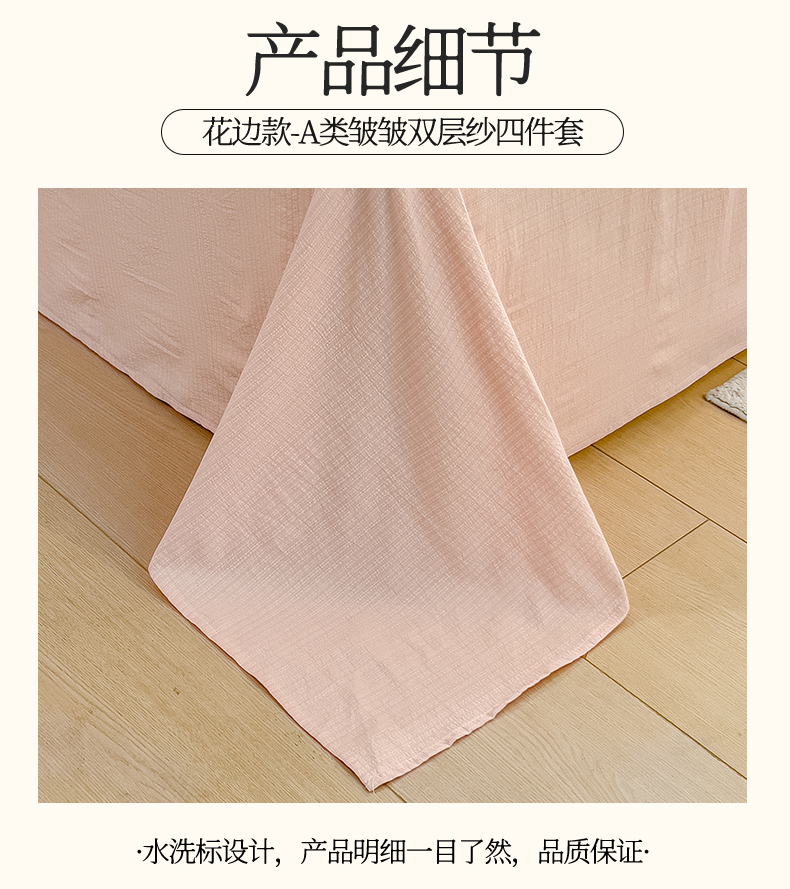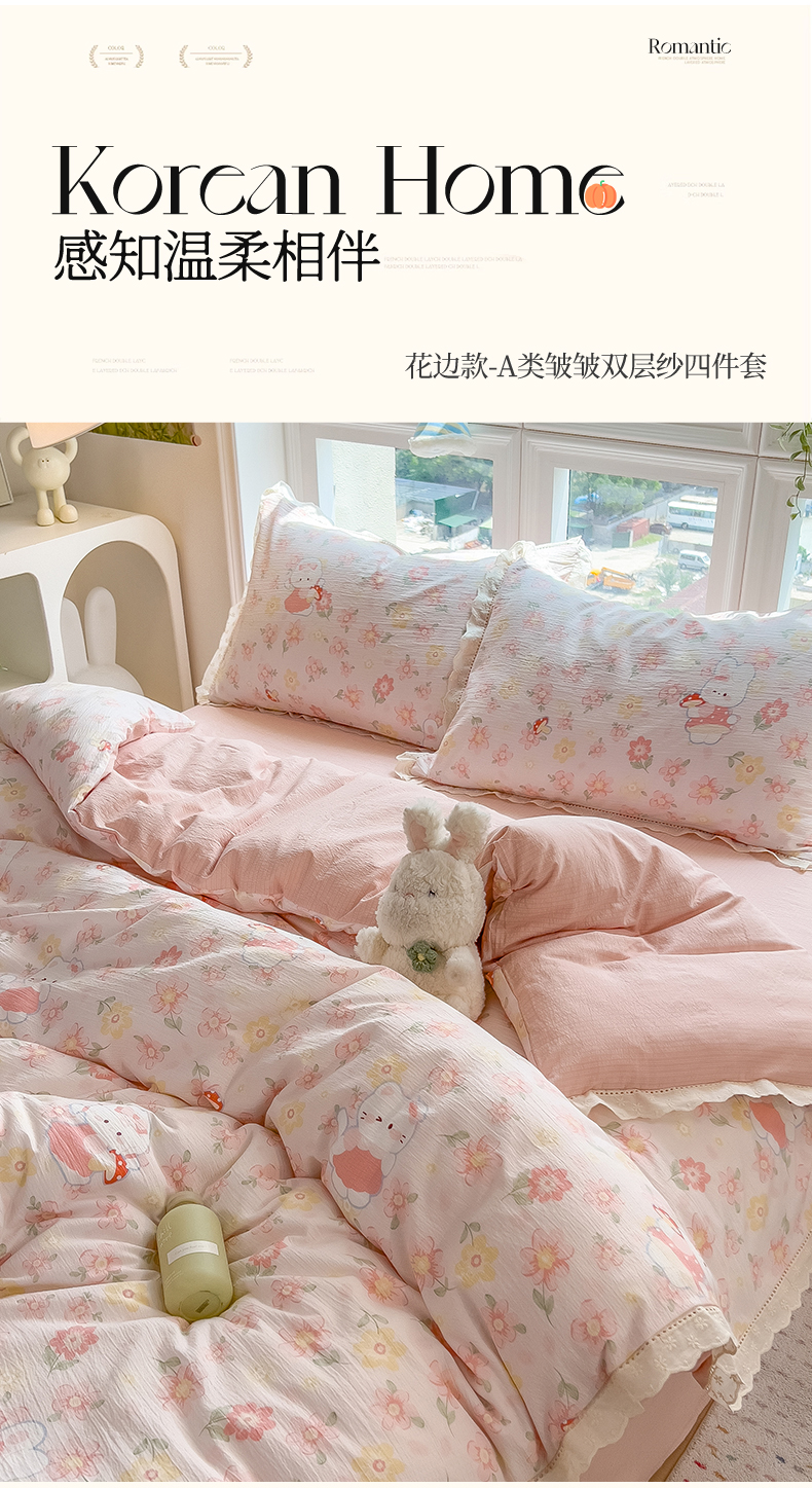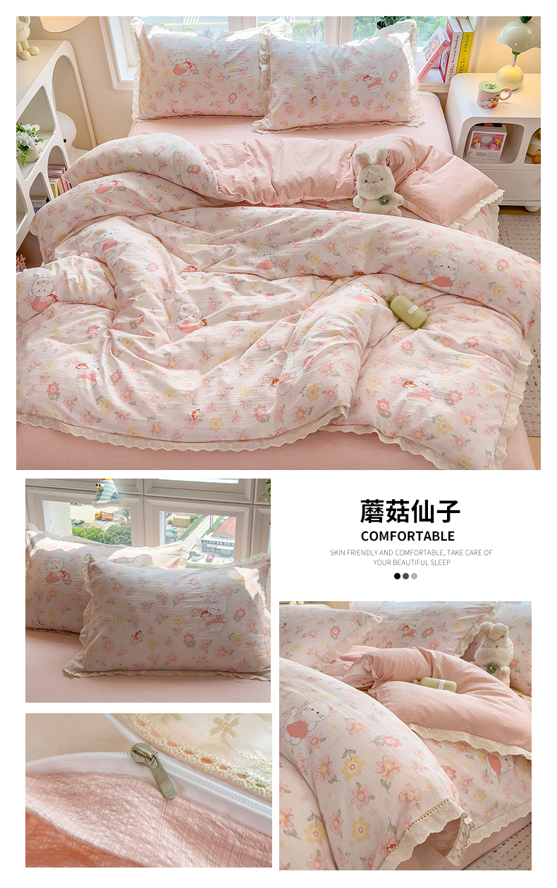 当前位置: 91家纺网 > 商品网购 > 床品套件 > 四件套 > 双层纱四件套 > 雯豆家纺2025新品皱皱双层纱四件套镂空花边款三件套 蘑菇仙子