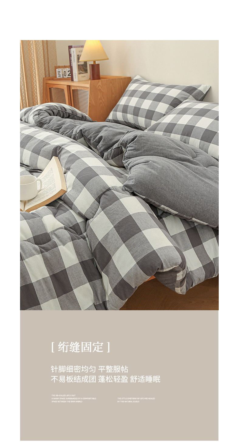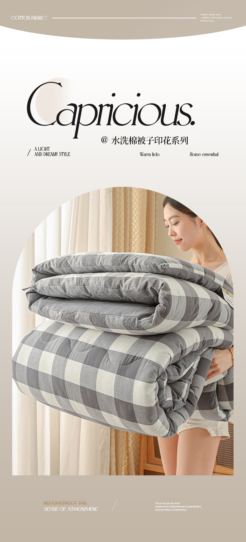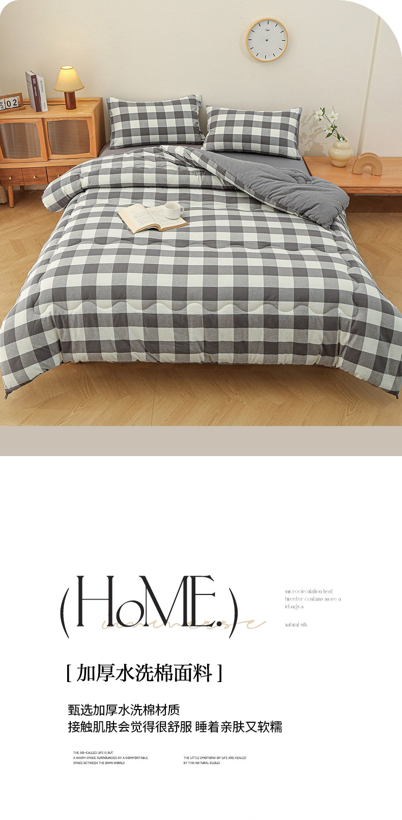 • 91家纺网 家纺一手货源 找家纺 牛魔王家居 2025新款水洗棉格子冬被春秋被纤维被被子 灰中格