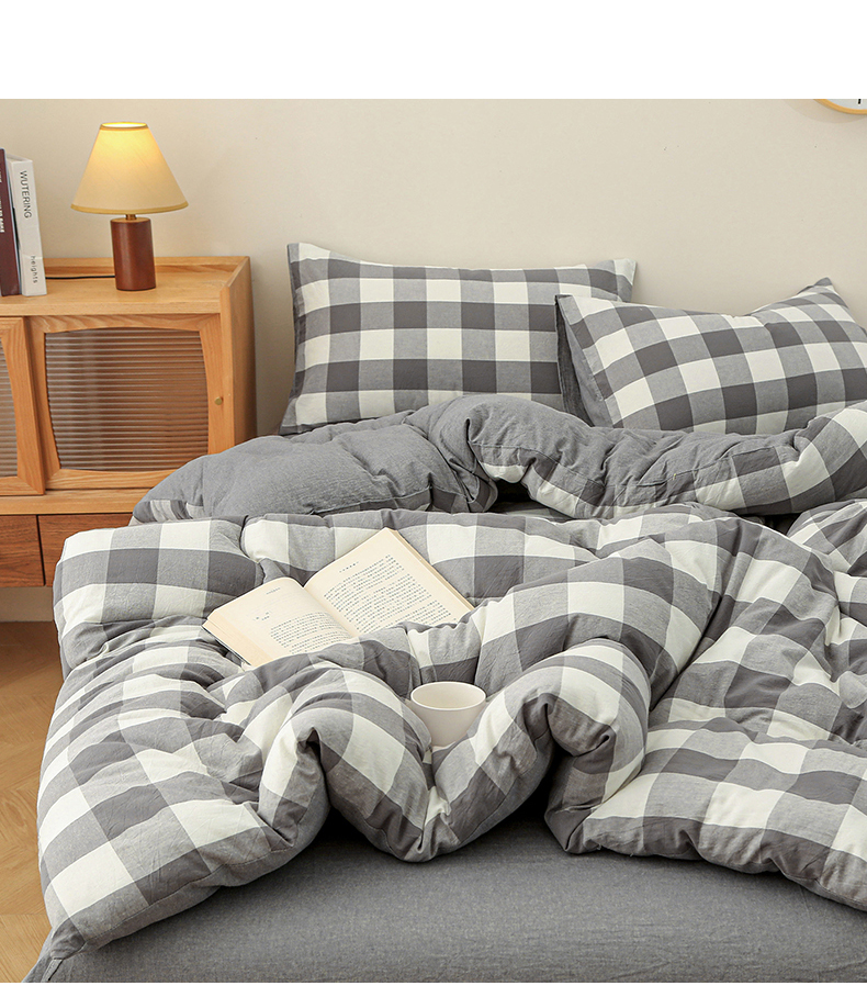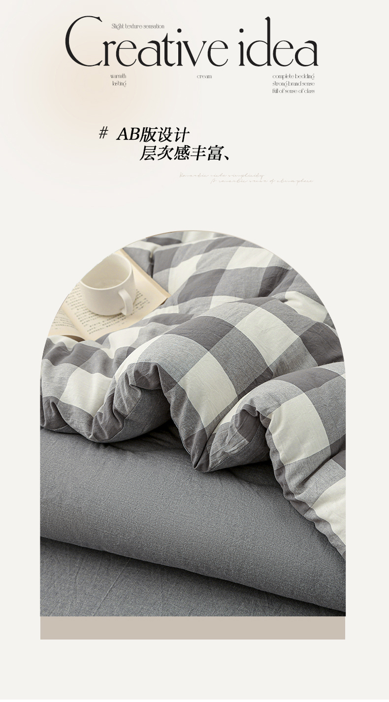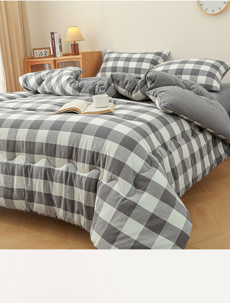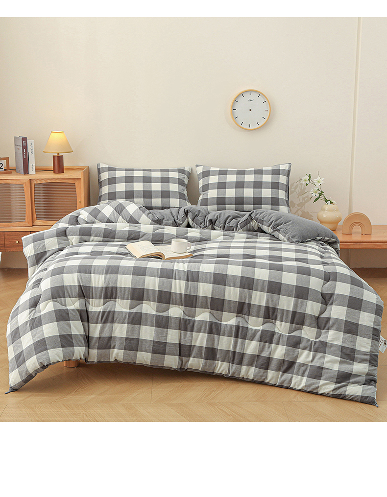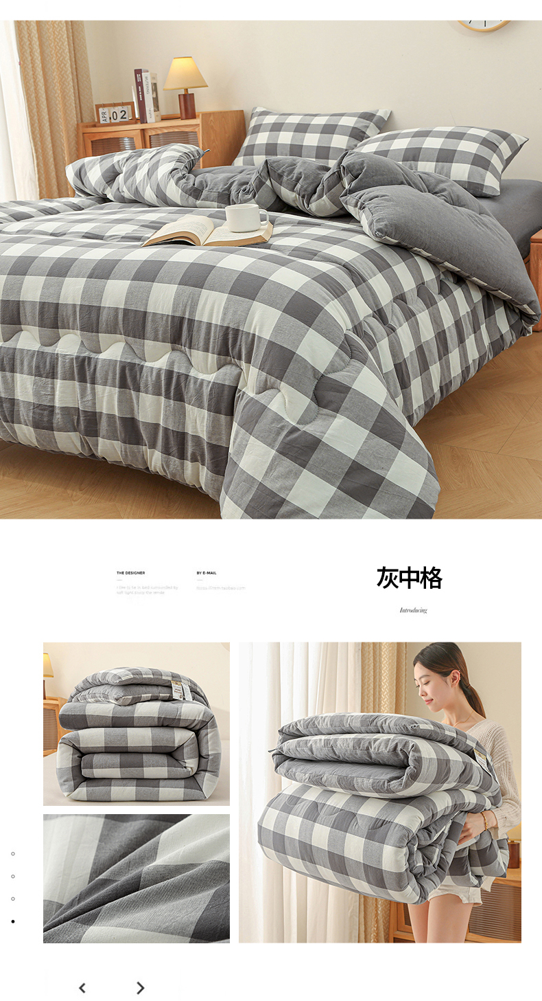 • 91家纺网 家纺一手货源 找家纺 牛魔王家居 2025新款水洗棉格子冬被春秋被纤维被被子 灰中格