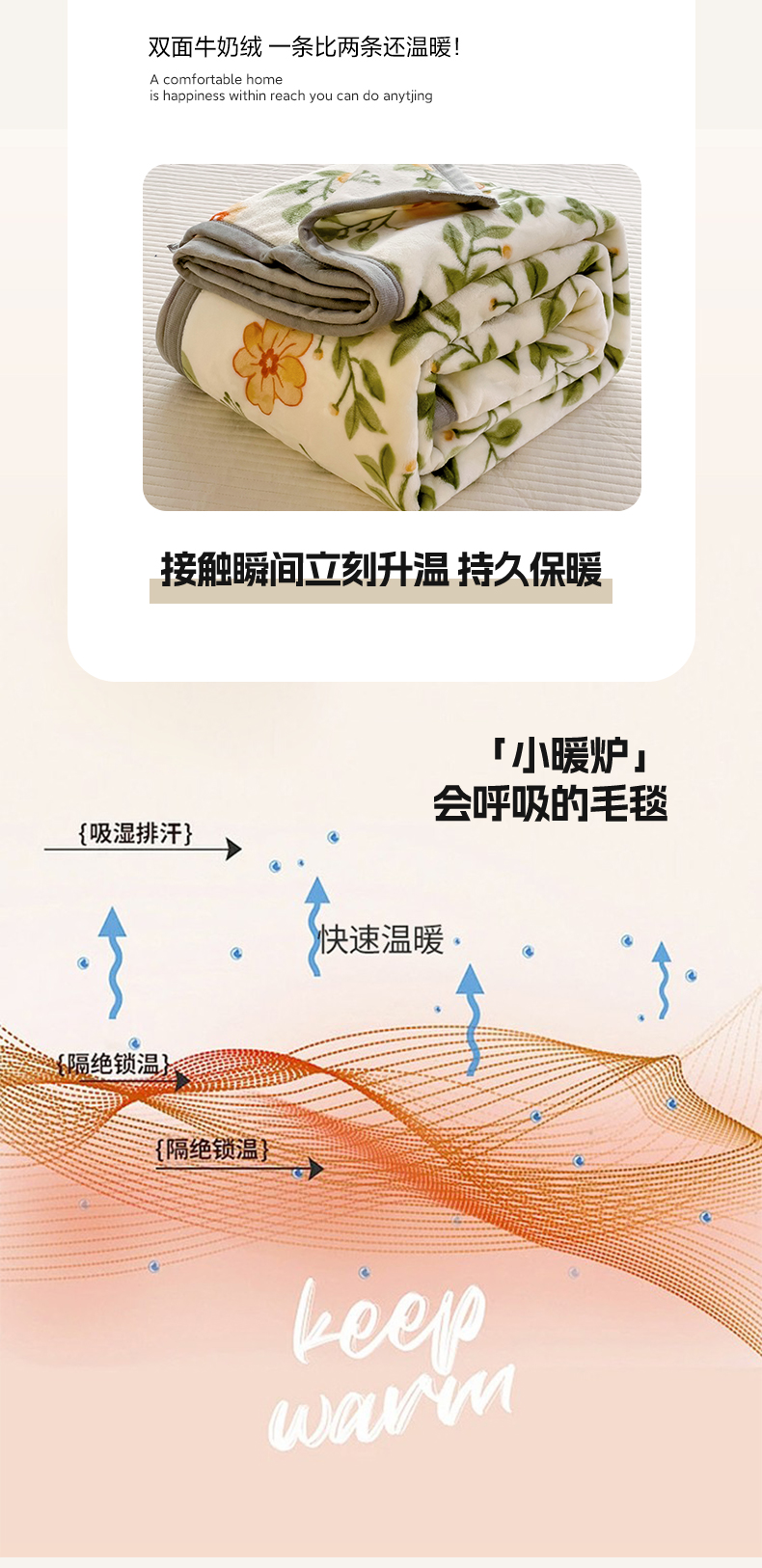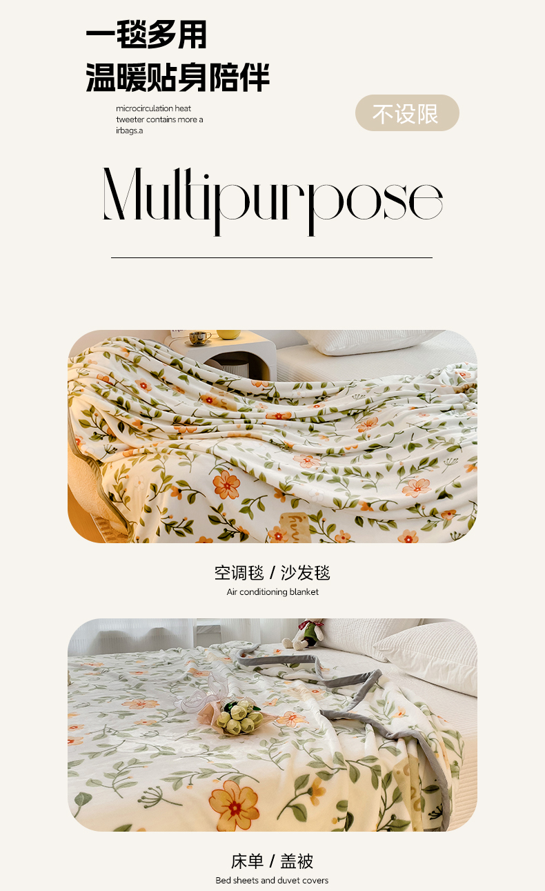 商品名称:启发毛毯 2025新款高克重双面牛奶绒盖毯 争艳花朵