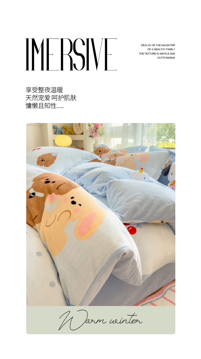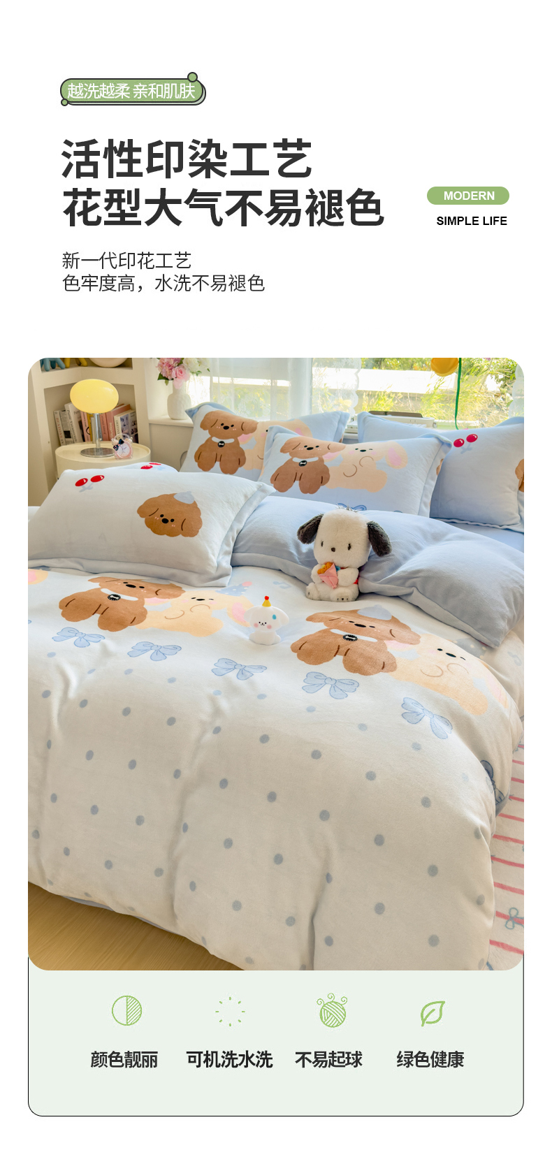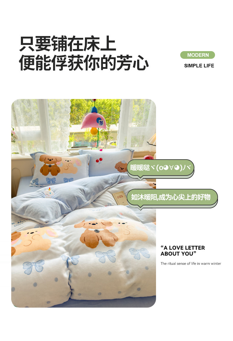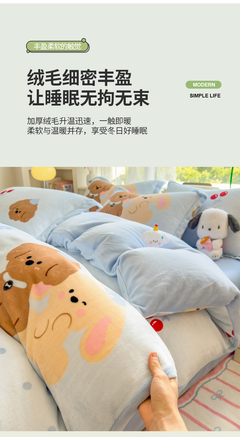 当前位置: 91家纺网 > 商品网购 > 床品套件 > 四件套 > 牛奶绒四件套 > 丝羽坊 2025新款200克加厚小清新牛奶绒床单款 床笠款四件套 被套 宠物派对