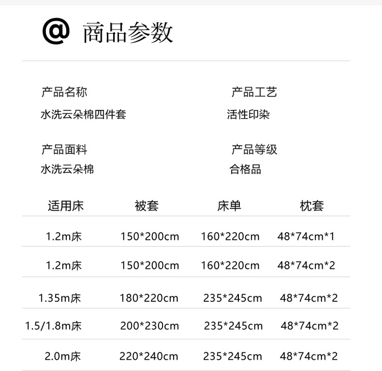 [{"sp_id":11,"sp_name":"\u989c\u8272\u5206\u7c7b","sp_format":2,"sp_list":[{"sp_value_id":55,"sp_value_name":"\u5976\u767d\u84dd\u7070","sp_value_image":{"id":999,"path":"https:\/\/img3.91jf.com\/ghelp\/2025\/20250809\/20250809113007_264431.jpg"},"sp_value_video":{"id":0,"img":"","path":"","time":0,"download_num":0,"play_num":0},"price":"2.50","storage":7500,"weight":"0.200","is_check_weight":0,"plus_price":"","sp_sort":5}]},{"sp_id":10,"sp_name":"\u9002\u7528\u5e8a\u5c3a\u5bf8","sp_format":1,"sp_list":[{"sp_value_id":41,"sp_value_name":"48x74cm\u6795\u5957\u4e00\u53ea","sp_value_image":{"id":0,"path":""},"sp_value_video":{"id":0,"img":"","path":"","time":0,"download_num":0,"play_num":0},"price":"2.50","storage":500,"weight":"0.200","is_check_weight":0,"plus_price":"","sp_sort":5},{"sp_value_id":42,"sp_value_name":"48x74cm\u6795\u5957\u4e00\u5bf9","sp_value_image":{"id":0,"path":""},"sp_value_video":{"id":0,"img":"","path":"","time":0,"download_num":0,"play_num":0},"price":"5.00","storage":500,"weight":"0.400","is_check_weight":0,"plus_price":"","sp_sort":6},{"sp_value_id":43,"sp_value_name":"160x220cm\u5355\u5e8a\u5355","sp_value_image":{"id":0,"path":""},"sp_value_video":{"id":0,"img":"","path":"","time":0,"download_num":0,"play_num":0},"price":"10.00","storage":500,"weight":"0.700","is_check_weight":0,"plus_price":"","sp_sort":7},{"sp_value_id":44,"sp_value_name":"235x245cm\u5355\u5e8a\u5355","sp_value_image":{"id":0,"path":""},"sp_value_video":{"id":0,"img":"","path":"","time":0,"download_num":0,"play_num":0},"price":"13.00","storage":500,"weight":"0.800","is_check_weight":0,"plus_price":"","sp_sort":8},{"sp_value_id":45,"sp_value_name":"150x200cm\u5355\u88ab\u5957","sp_value_image":{"id":0,"path":""},"sp_value_video":{"id":0,"img":"","path":"","time":0,"download_num":0,"play_num":0},"price":"20.00","storage":500,"weight":"0.800","is_check_weight":0,"plus_price":"","sp_sort":9},{"sp_value_id":736,"sp_value_name":"180x220cm\u5355\u88ab\u5957","sp_value_image":{"id":0,"path":""},"sp_value_video":{"id":0,"img":"","path":"","time":0,"download_num":0,"play_num":0},"price":"22.00","storage":500,"weight":"0.900","is_check_weight":0,"plus_price":"","sp_sort":10},{"sp_value_id":46,"sp_value_name":"200x230cm\u5355\u88ab\u5957","sp_value_image":{"id":0,"path":""},"sp_value_video":{"id":0,"img":"","path":"","time":0,"download_num":0,"play_num":0},"price":"23.00","storage":500,"weight":"1.000","is_check_weight":0,"plus_price":"","sp_sort":11},{"sp_value_id":764,"sp_value_name":"220x240cm\u5355\u88ab\u5957","sp_value_image":{"id":0,"path":""},"sp_value_video":{"id":0,"img":"","path":"","time":0,"download_num":0,"play_num":0},"price":"24.00","storage":500,"weight":"1.100","is_check_weight":0,"plus_price":"","sp_sort":12},{"sp_value_id":765,"sp_value_name":"\u3010\u5e8a\u5355\u6b3e\u30110.9\u4e09\u4ef6\u5957-\u88ab\u5957150x200","sp_value_image":{"id":0,"path":""},"sp_value_video":{"id":0,"img":"","path":"","time":0,"download_num":0,"play_num":0},"price":"24.00","storage":500,"weight":"2.000","is_check_weight":0,"plus_price":"","sp_sort":13},{"sp_value_id":766,"sp_value_name":"\u3010\u5e8a\u5355\u6b3e\u30111.2\u4e09\u4ef6\u5957-\u88ab\u5957150x200","sp_value_image":{"id":0,"path":""},"sp_value_video":{"id":0,"img":"","path":"","time":0,"download_num":0,"play_num":0},"price":"24.00","storage":500,"weight":"2.000","is_check_weight":0,"plus_price":"","sp_sort":14},{"sp_value_id":771,"sp_value_name":"\u3010\u5e8a\u5355\u6b3e\u30111.2\u56db\u4ef6\u5957-\u88ab\u5957150x200","sp_value_image":{"id":0,"path":""},"sp_value_video":{"id":0,"img":"","path":"","time":0,"download_num":0,"play_num":0},"price":"29.50","storage":500,"weight":"2.200","is_check_weight":0,"plus_price":"","sp_sort":15},{"sp_value_id":772,"sp_value_name":"\u3010\u5e8a\u5355\u6b3e\u30111.35\u56db\u4ef6\u5957-\u88ab\u5957180x220","sp_value_image":{"id":0,"path":""},"sp_value_video":{"id":0,"img":"","path":"","time":0,"download_num":0,"play_num":0},"price":"32.50","storage":500,"weight":"2.400","is_check_weight":0,"plus_price":"","sp_sort":16},{"sp_value_id":774,"sp_value_name":"\u3010\u5e8a\u5355\u6b3e\u30111.5\u56db\u4ef6\u5957-\u88ab\u5957200x230","sp_value_image":{"id":0,"path":""},"sp_value_video":{"id":0,"img":"","path":"","time":0,"download_num":0,"play_num":0},"price":"33.50","storage":500,"weight":"2.600","is_check_weight":0,"plus_price":"","sp_sort":17},{"sp_value_id":775,"sp_value_name":"\u3010\u5e8a\u5355\u6b3e\u30111.8\u56db\u4ef6\u5957-\u88ab\u5957200x230","sp_value_image":{"id":0,"path":""},"sp_value_video":{"id":0,"img":"","path":"","time":0,"download_num":0,"play_num":0},"price":"33.50","storage":500,"weight":"2.600","is_check_weight":0,"plus_price":"","sp_sort":18},{"sp_value_id":776,"sp_value_name":"\u3010\u5e8a\u5355\u6b3e\u30112.0\u56db\u4ef6\u5957-\u88ab\u5957220x240","sp_value_image":{"id":0,"path":""},"sp_value_video":{"id":0,"img":"","path":"","time":0,"download_num":0,"play_num":0},"price":"37.00","storage":500,"weight":"2.800","is_check_weight":0,"plus_price":"","sp_sort":19}]}]
