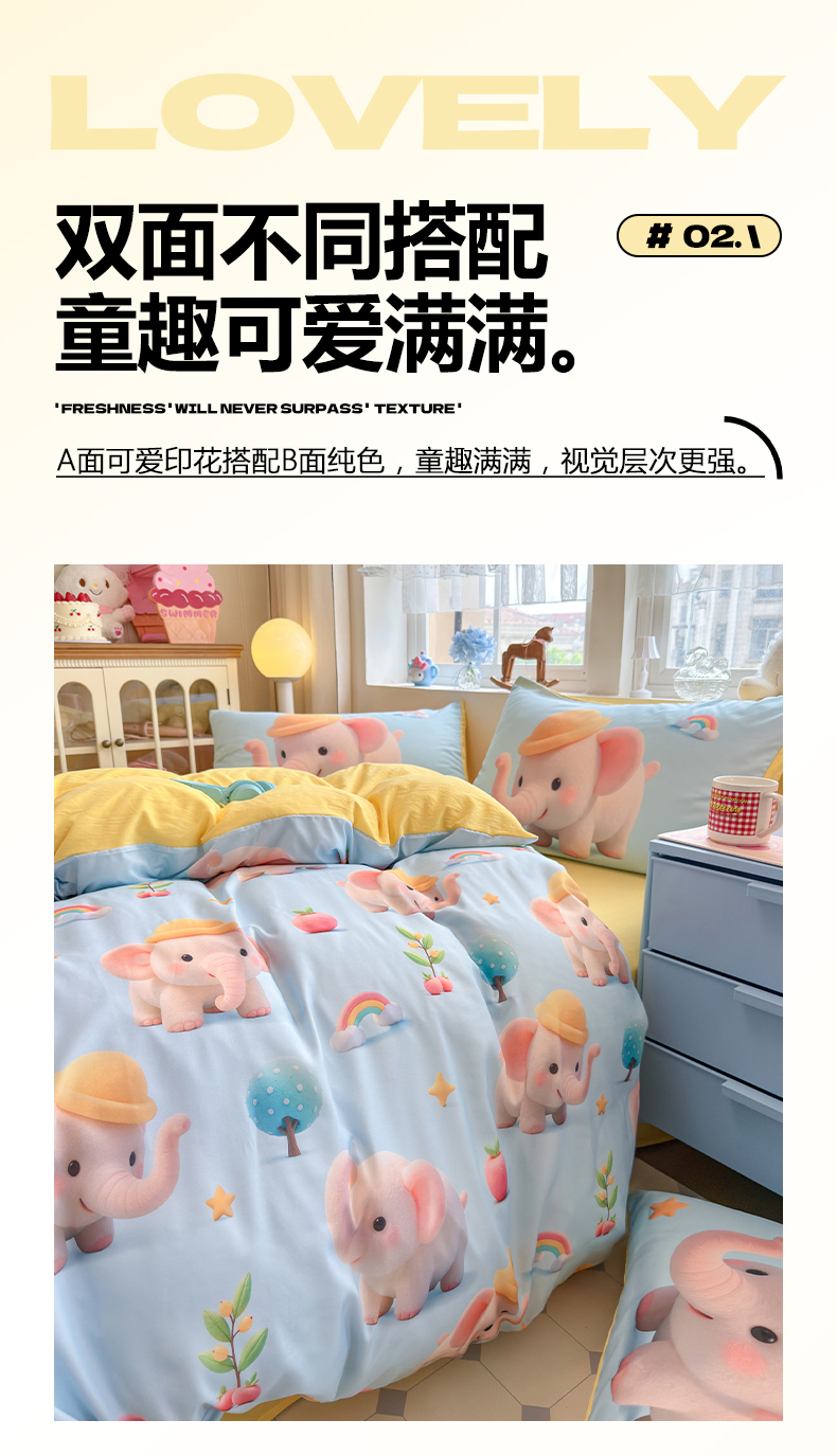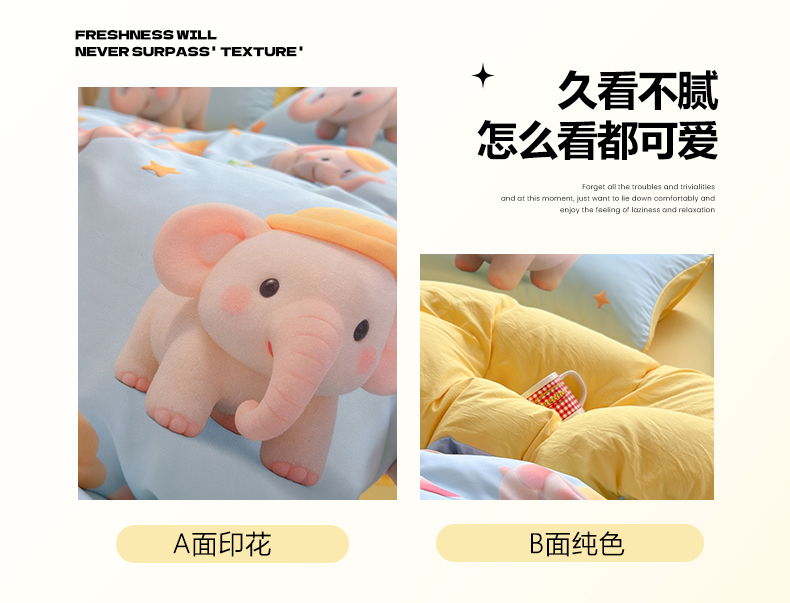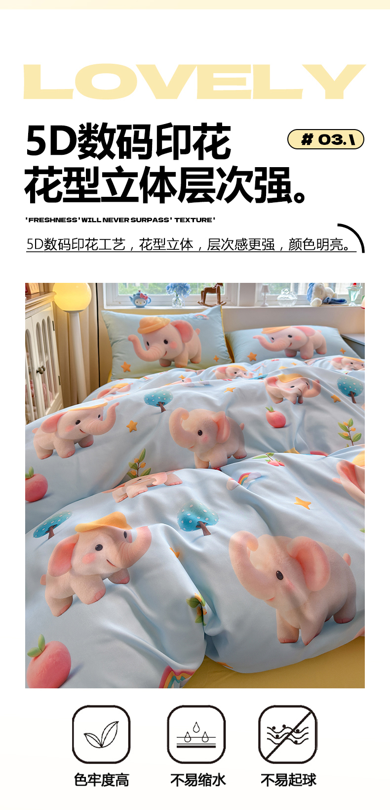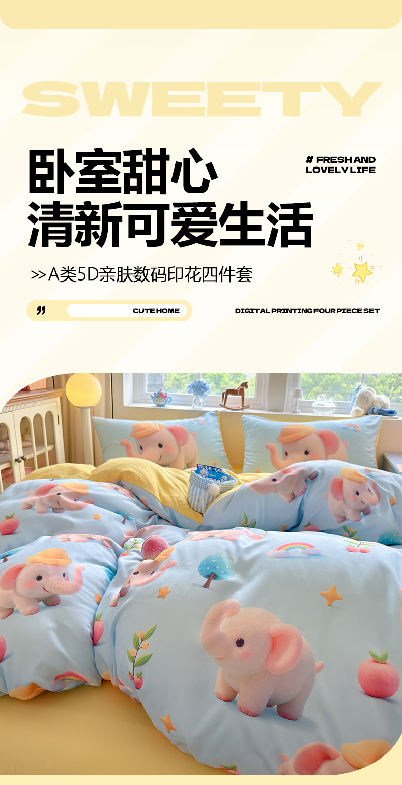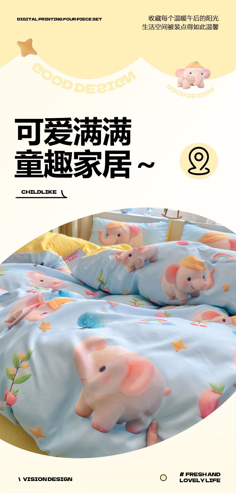 当前位置: 91家纺网 > 商品网购 > 床品套件 > 四件套 > 其它四件套 > 优卡迪家纺馆 2025新款110克5D数码印花四件套 奇幻小象