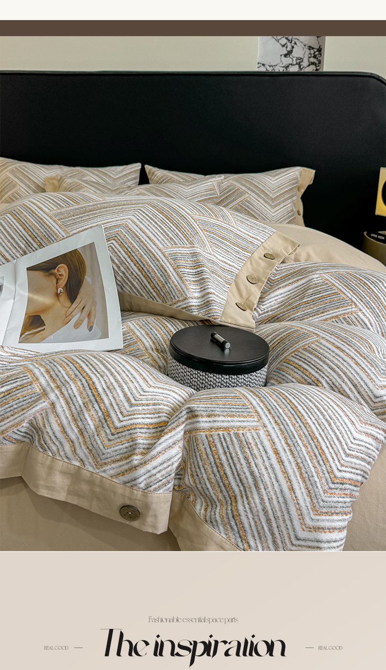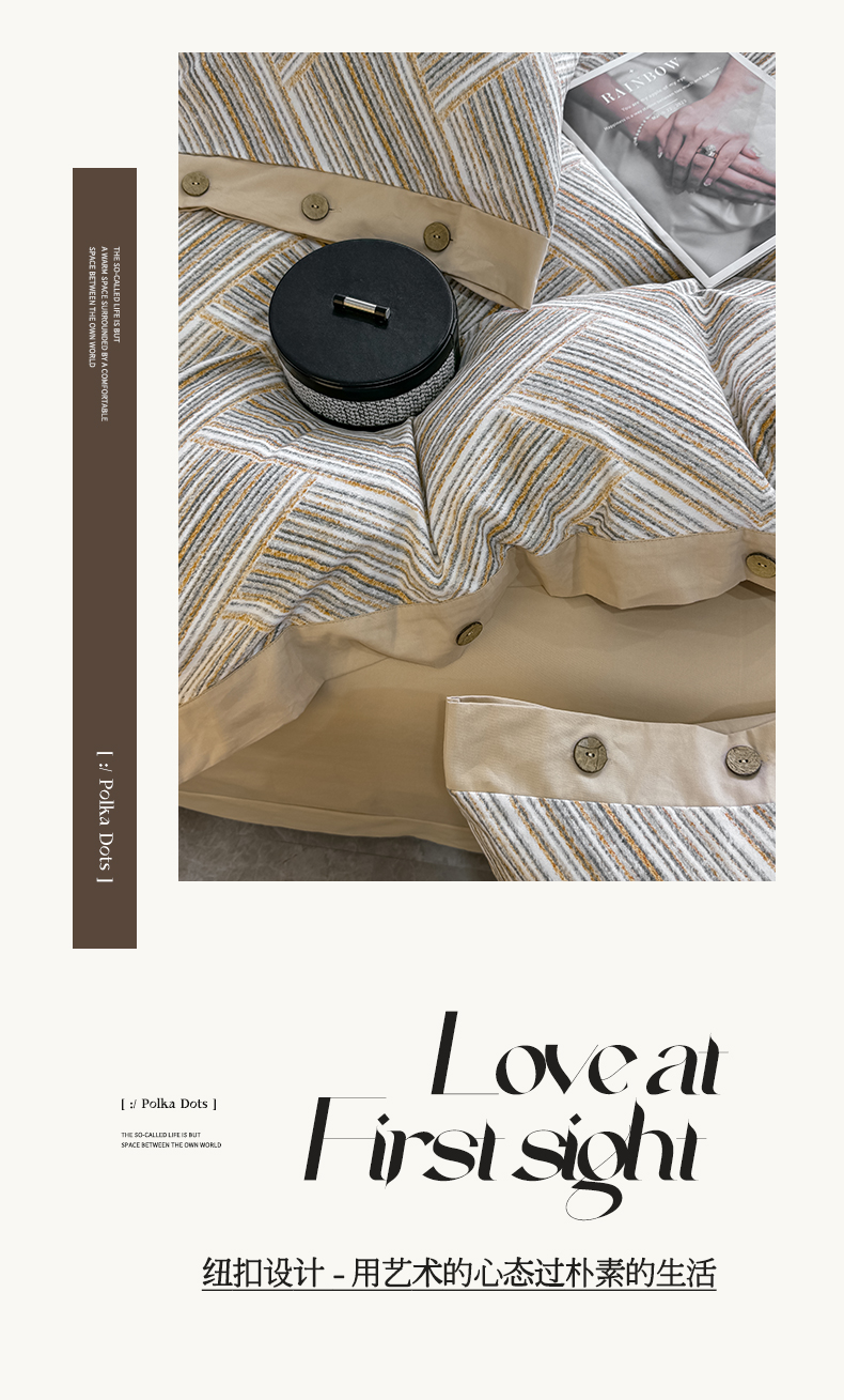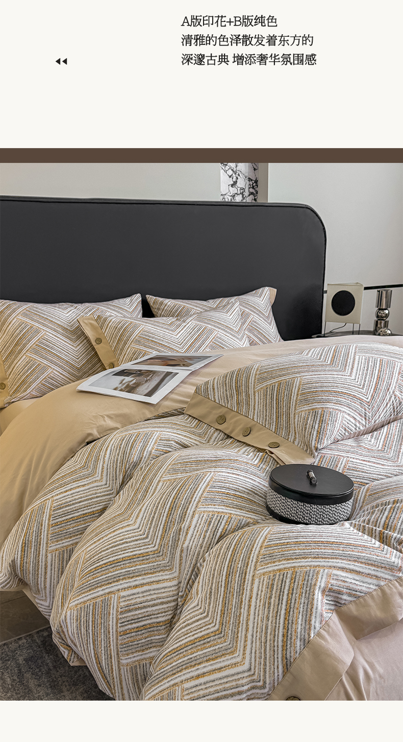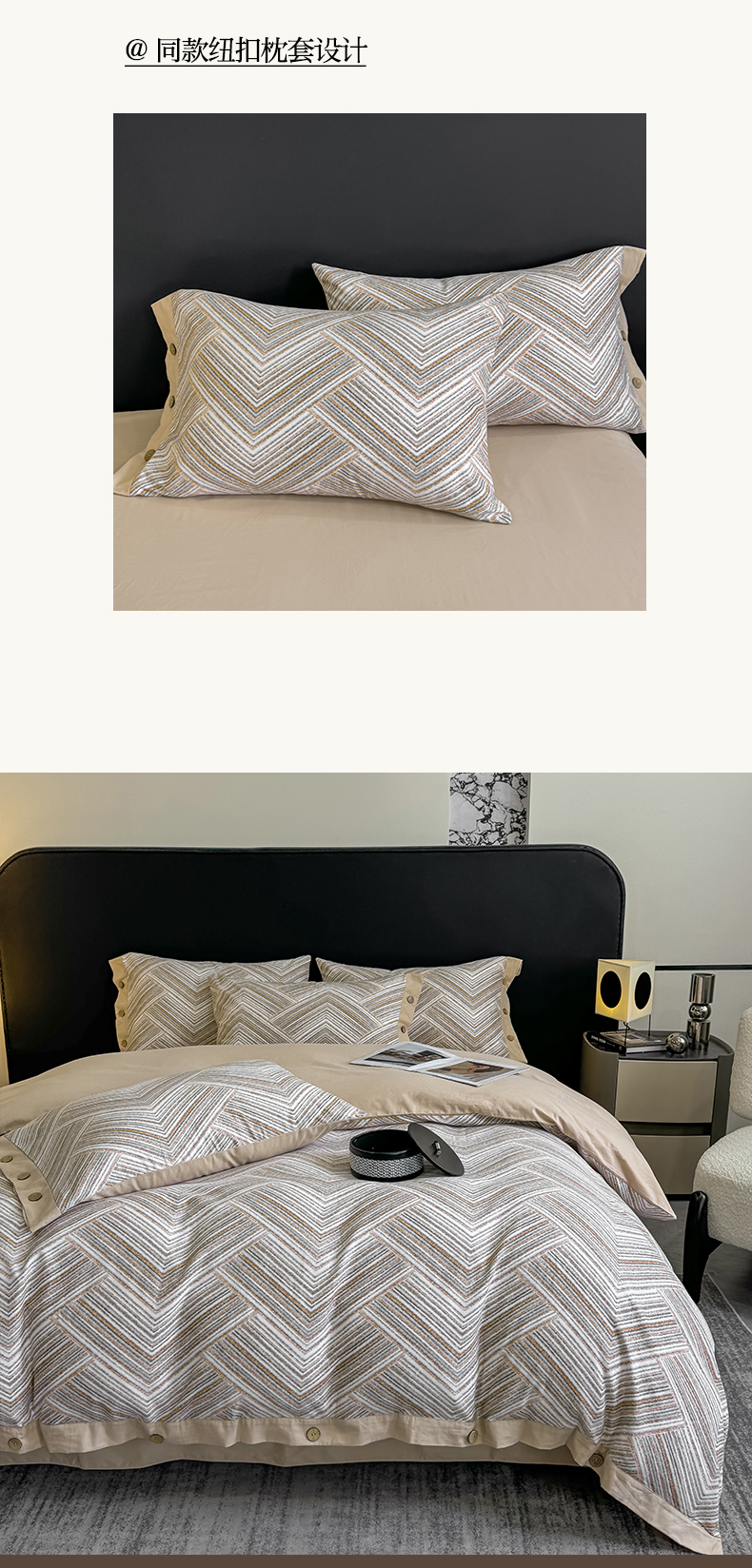 麦田家纺 2025新款全棉纯棉轻奢加厚磨毛纽扣款四件套 艾文