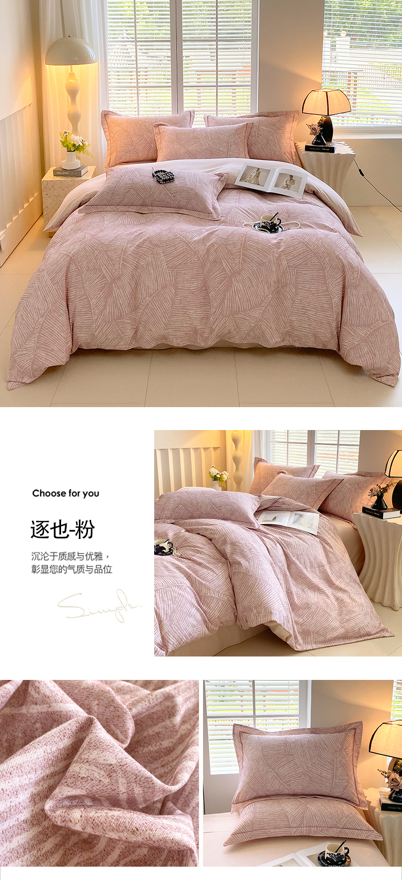 威布斯 2025新款加厚纯棉全棉磨毛三件套四件套,心心念念 粉