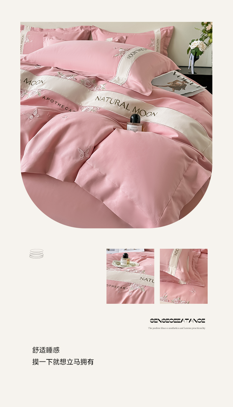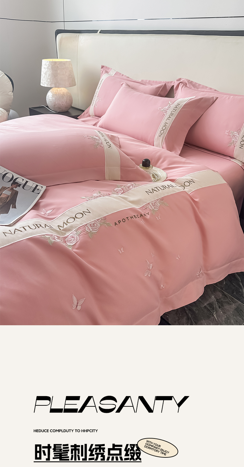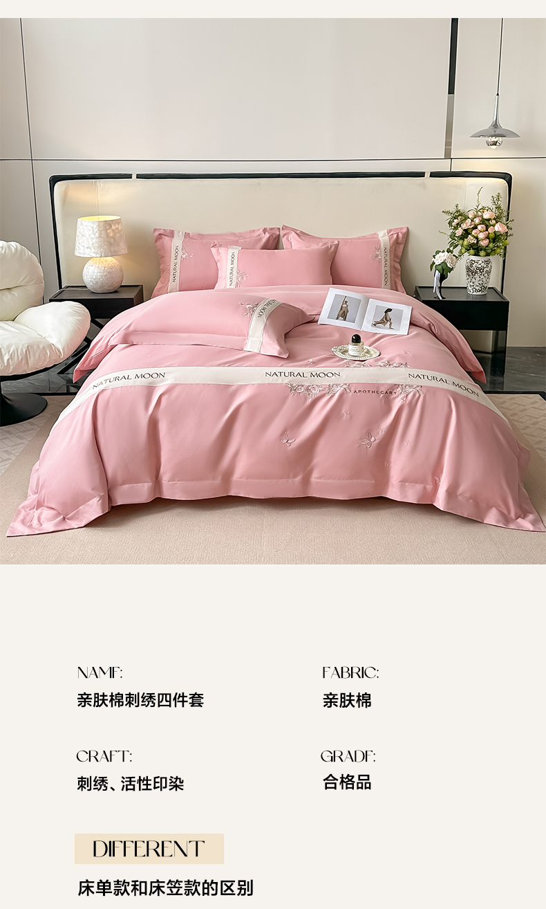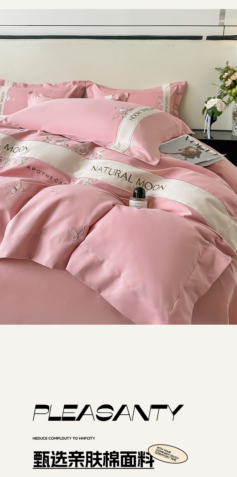 商品名称:遇见家居生活馆 2025新款亲肤棉刺绣四件套-花田里 花田里-公主粉