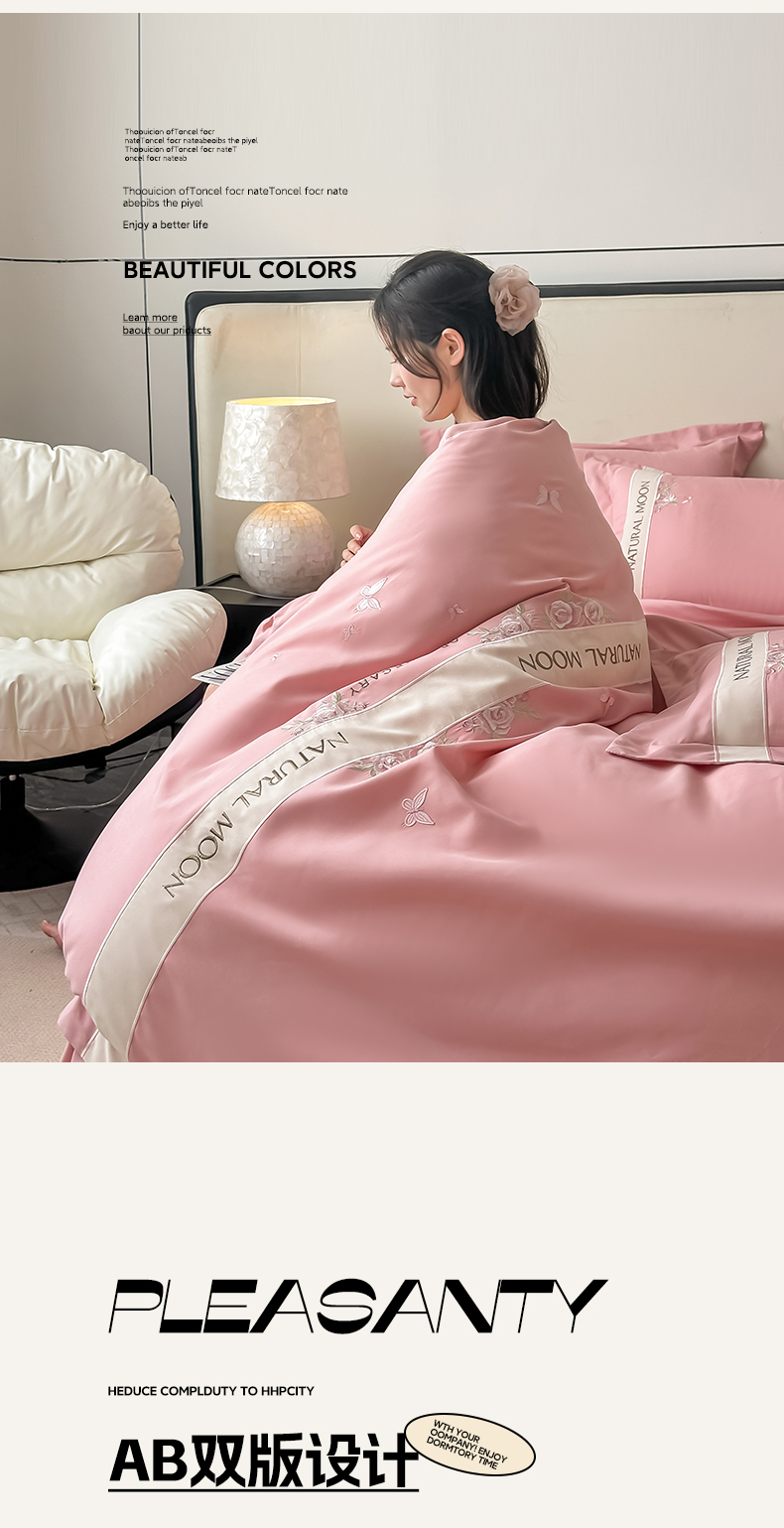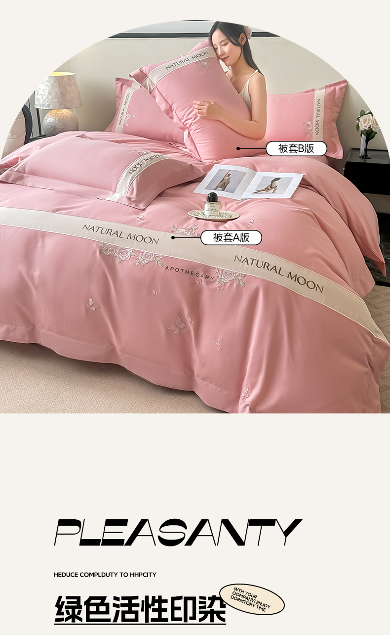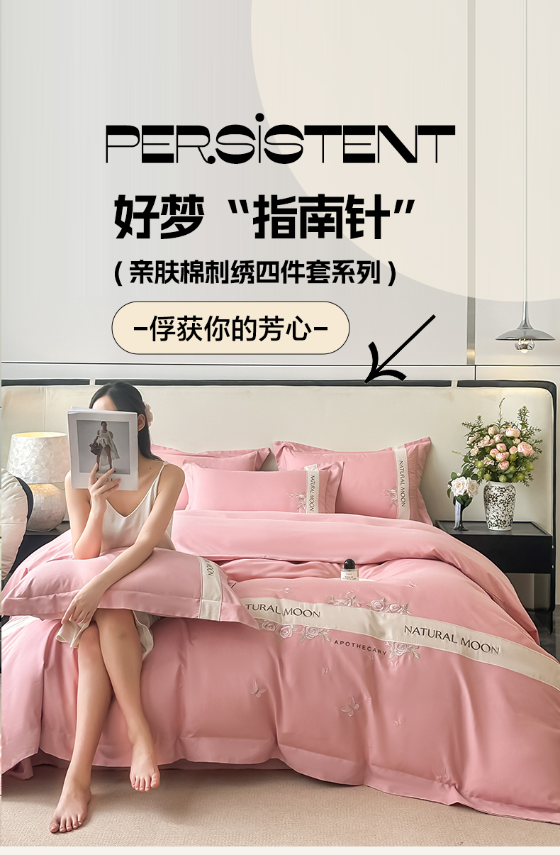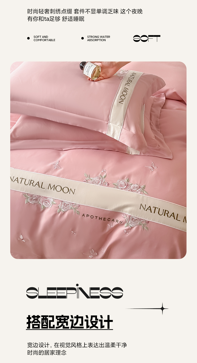 商品名称:遇见家居生活馆 2025新款亲肤棉刺绣四件套-花田里 花田里-公主粉