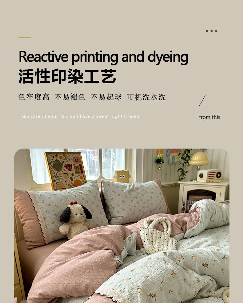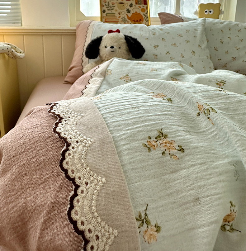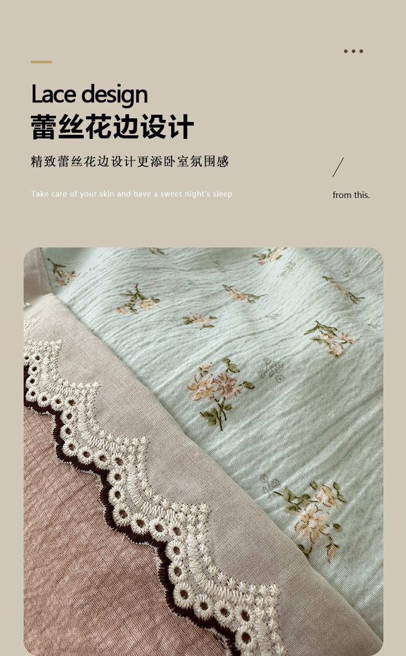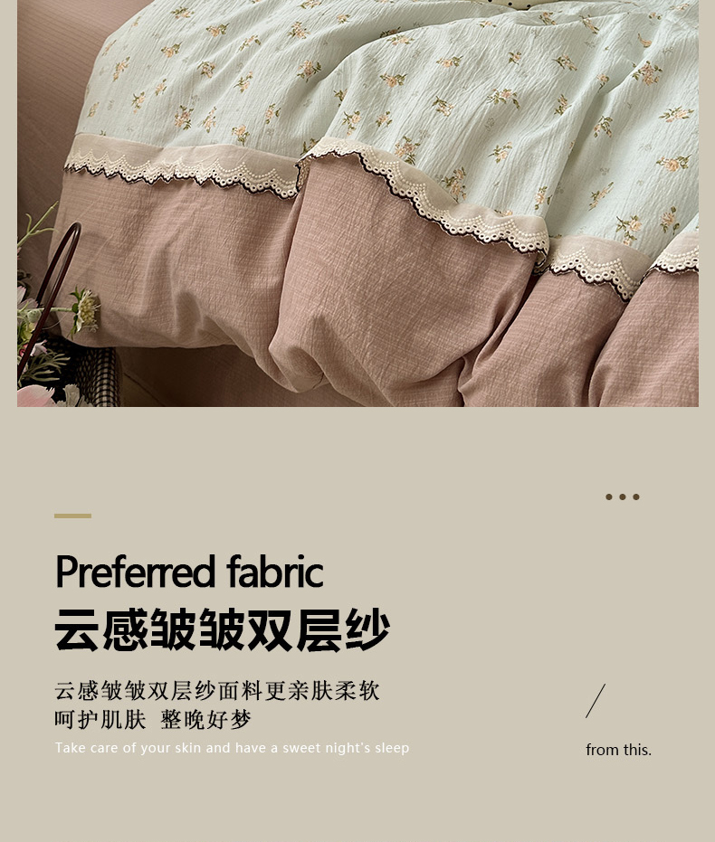 当前位置: 91家纺网 > 商品网购 > 床品套件 > 四件套 > 全棉普通四件套 > 水墨江南 2025新款云感皱皱纱全棉花边四件套场景一 花边款-铃兰花