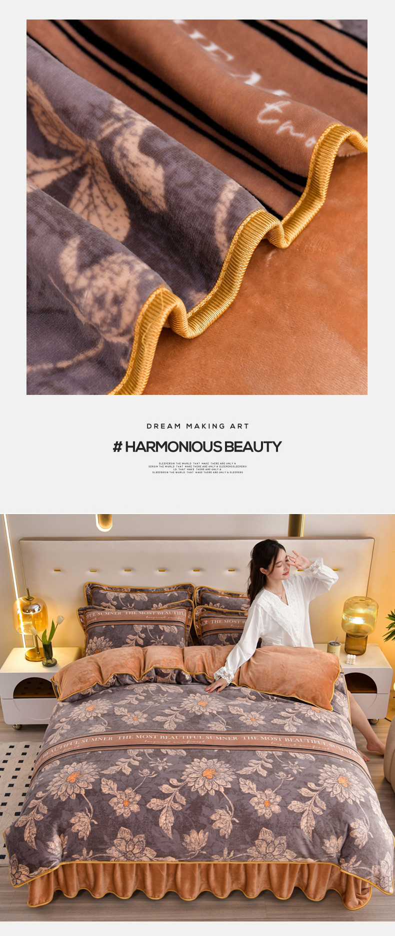 芯诗曼2025新款8.5斤直播热款高克重牛奶绒法莱绒水晶金貂法莱绒四件套幸运一生,幸运一生,雍容华贵
