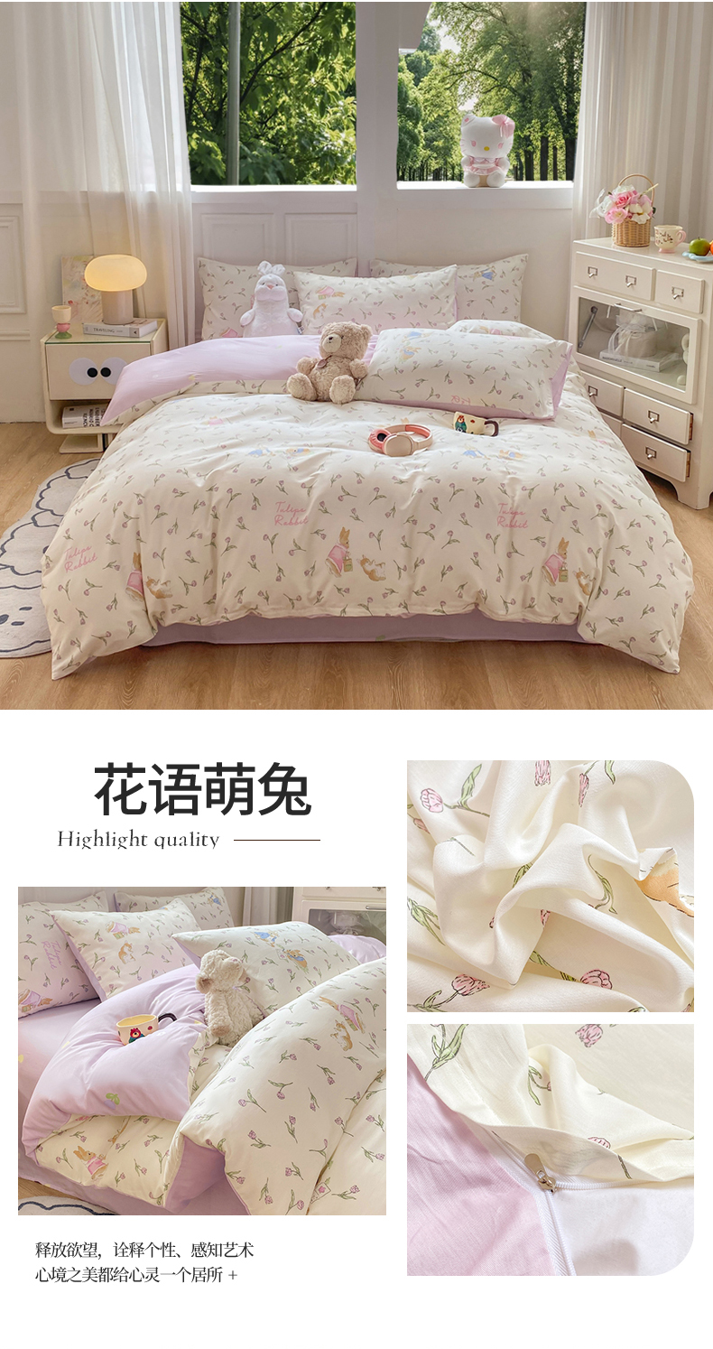 当前位置: 91家纺网 > 商品网购 > 床品套件 > 四件套 > 全棉普通四件套 > 红日子纺织品 2025新款12868全棉印花系列四件套 甜心情节
