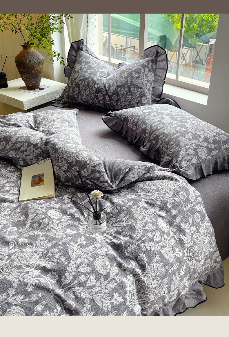 宝士康家纺 2025新品10A抗菌原麻荷叶边床单款四件套 人间草木