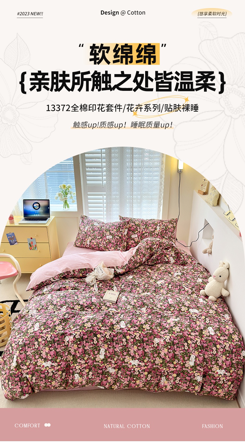 当前位置: 91家纺网 > 商品网购 > 床品套件 > 四件套 > 全棉普通四件套 > 小叮当家纺仓储工厂店 2025新款13372碎花全棉纯棉四件套 沉浸花园