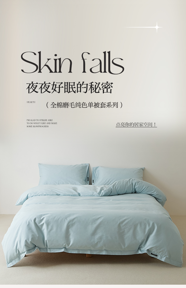 EH家居 2025新款全棉磨毛纯色单被套-云栖系列 云栖-海蓝
