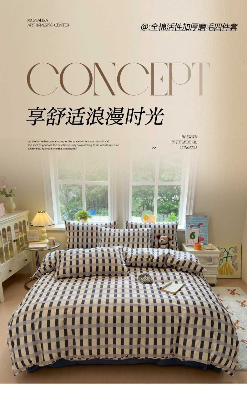 当前位置: 91家纺网 > 商品网购 > 床品套件 > 四件套 > 普通磨毛四件套 > 如意朵 2025新款全棉纯棉磨毛四件套 艾格-灰