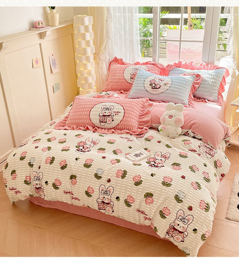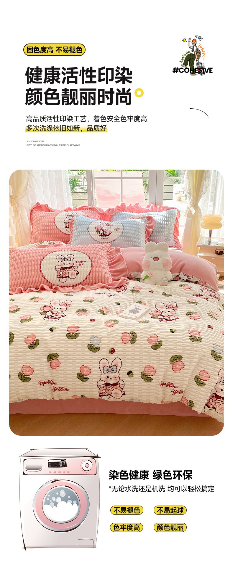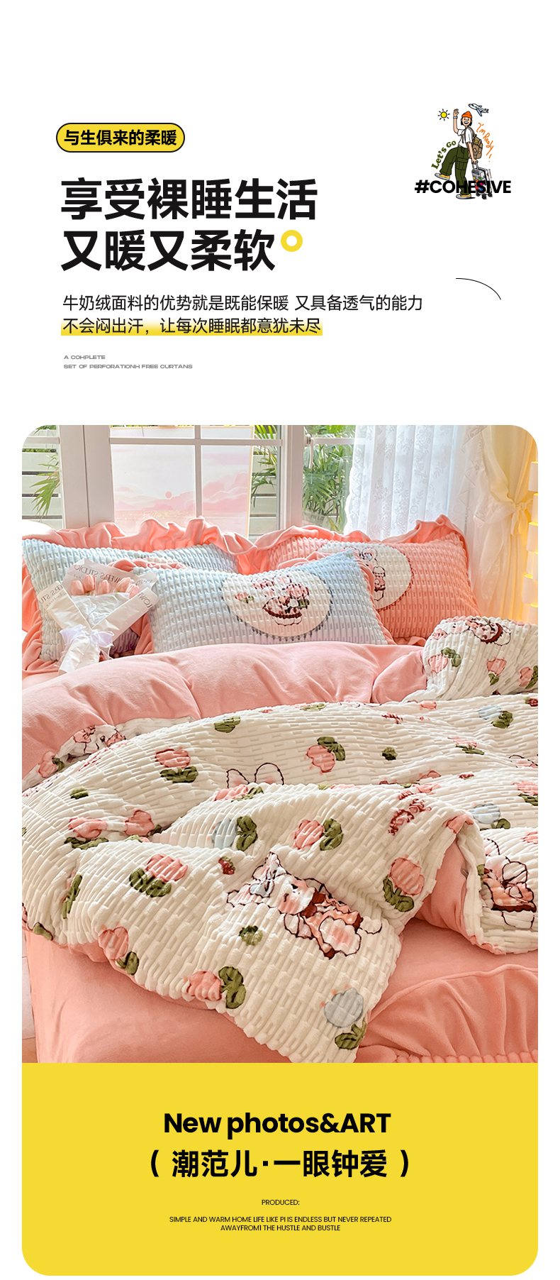 (总)摩妮卡 2025新款小清新加厚260克牛奶绒泡泡绒四件套,甜系兔兔,幽香恋曲,软萌萌小兔,洛丽兔,紫韵美乐蒂,萌兔时光,凯蒂小熊,软萌小猫,暮雅,快乐每一天,花园狗,奶蓝玉桂狗,小兔甜甜酱