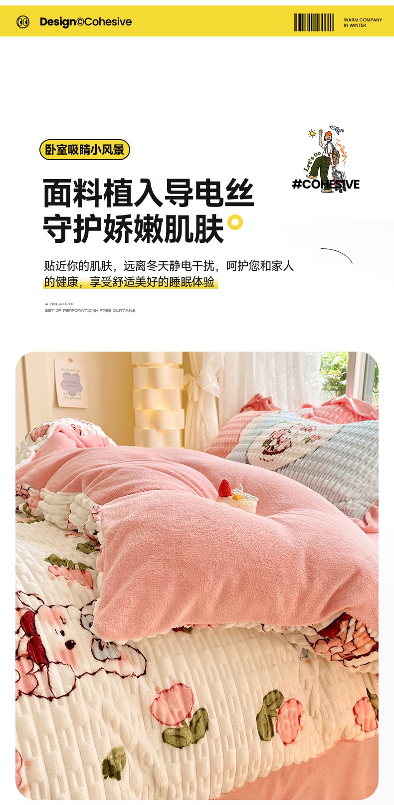 (总)摩妮卡 2025新款牛奶绒印花夹棉床盖印花四件套,安妮兔,甜梦屋-蓝,凯蒂粉梦,梦屋小熊,蝴蝶结凯蒂,蛋糕派,甜梦屋-黄,凯蒂小樱桃,萌兔小屋,瑞迪熊,甜蜜小花,小狗lucky,熊猫点点,熊旺小趣