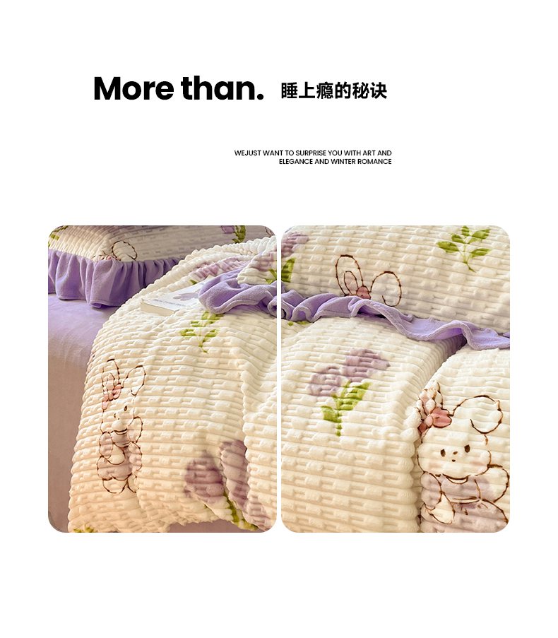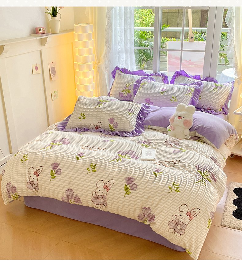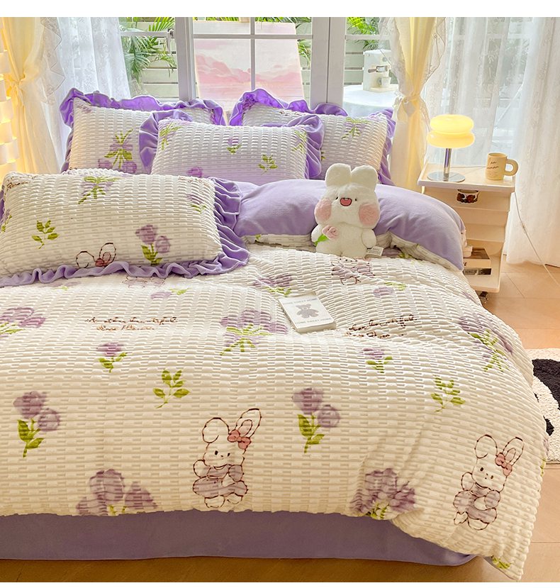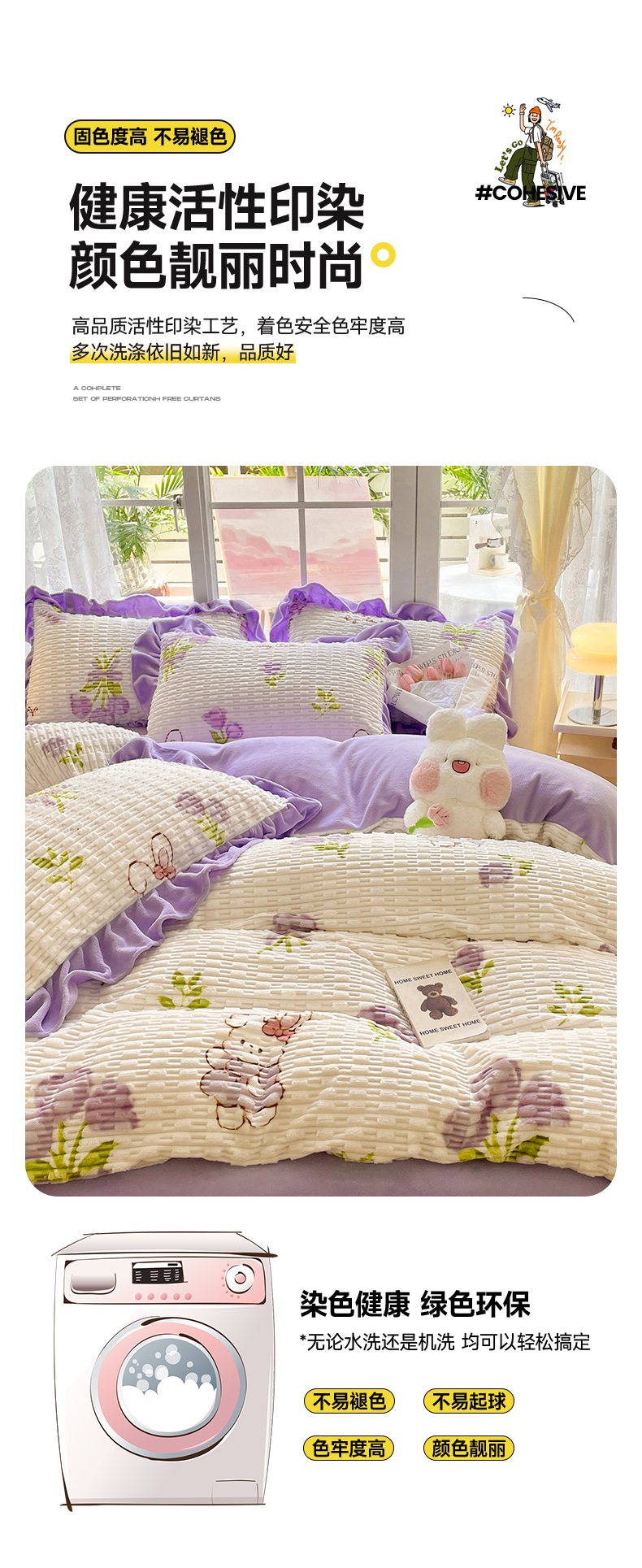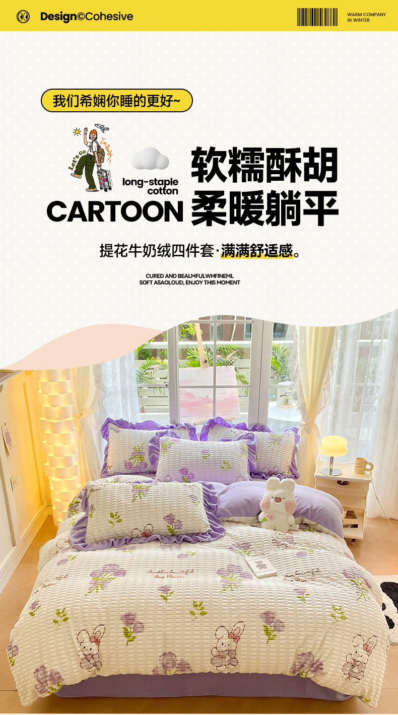 商品名称:摩妮卡 2025新款提花豆豆绒卡通印花牛奶绒四件套 兔兔物语