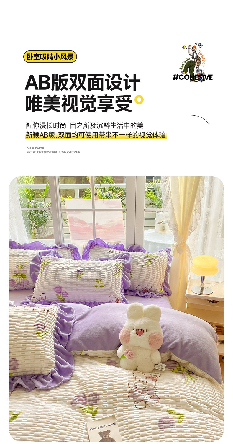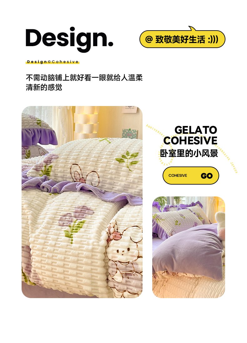 (总)摩妮卡 2025新款小清新加厚260克牛奶绒泡泡绒四件套,甜系兔兔,幽香恋曲,软萌萌小兔,洛丽兔,紫韵美乐蒂,萌兔时光,凯蒂小熊,软萌小猫,暮雅,快乐每一天,花园狗,奶蓝玉桂狗,小兔甜甜酱