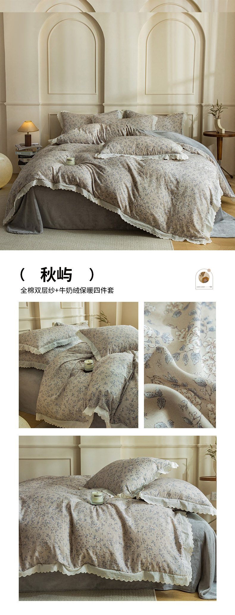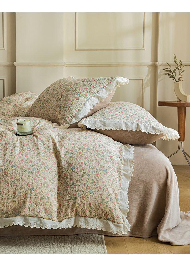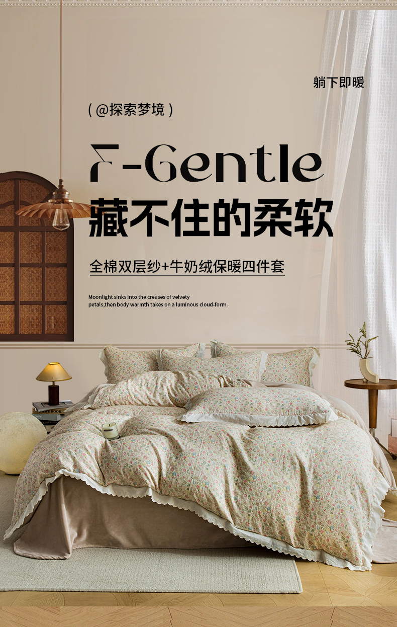 (总)大境 2025秋冬新款A类全棉双层纱棉加牛奶绒四件套韩版公主风,春野,可颂,奈斯,秋屿,瑞芙丽,映秋