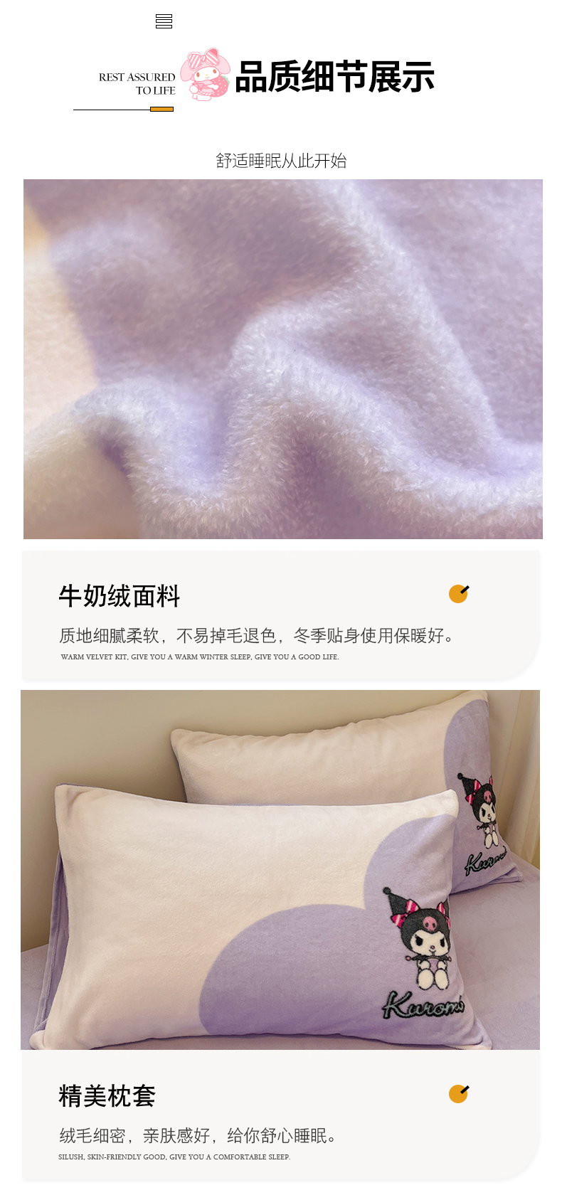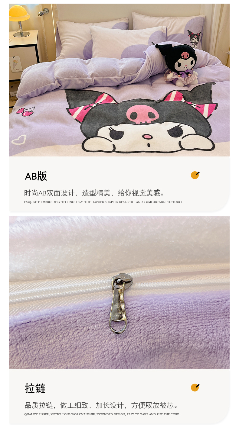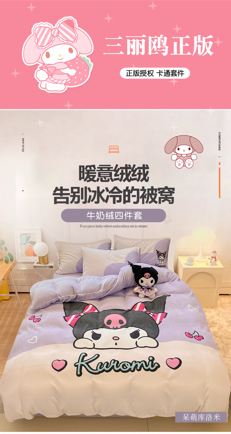 当前位置: 91家纺网 > 商品网购 > 床品套件 > 四件套 > 牛奶绒四件套 > 金爱家 2025新款正版三丽鸥授权大版卡通平网数码印花加厚高克重牛奶绒系列四件套-第二批 绒R呆萌库洛米