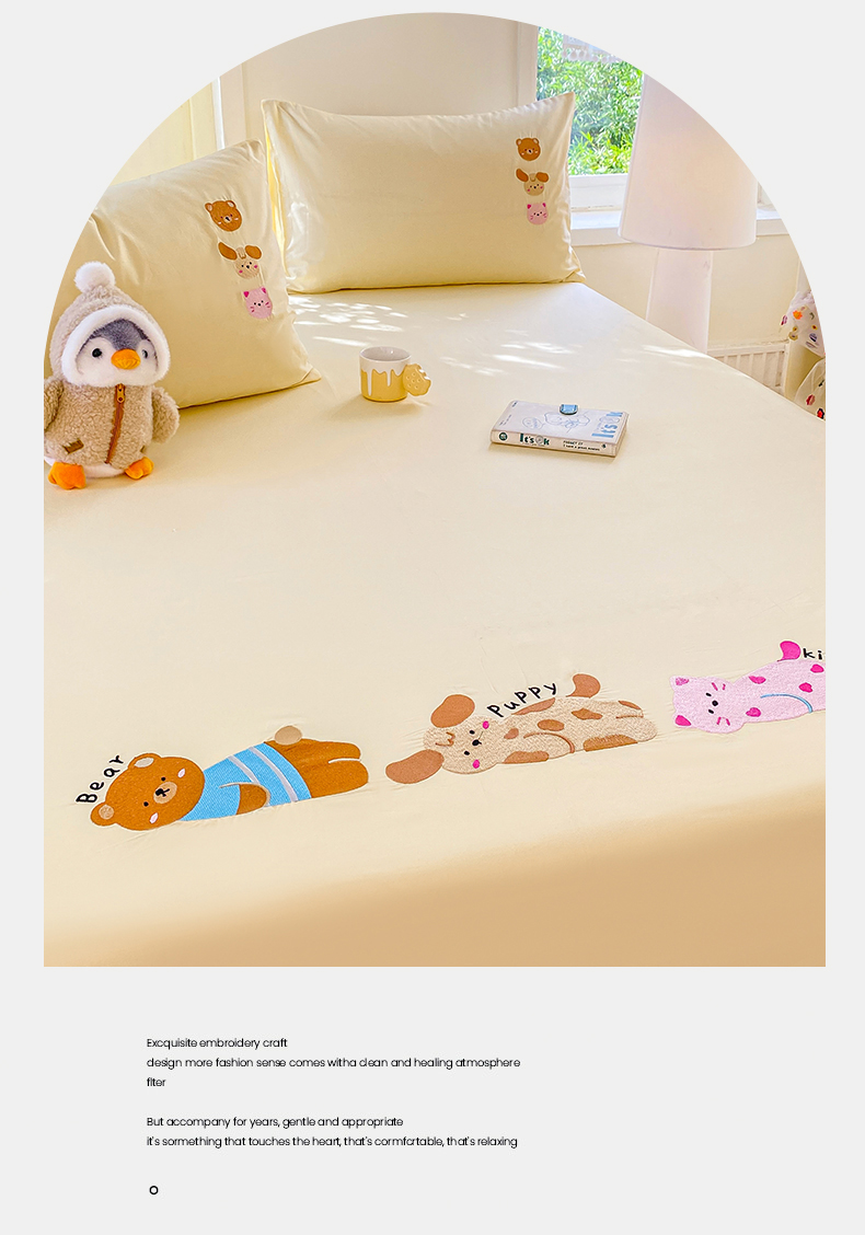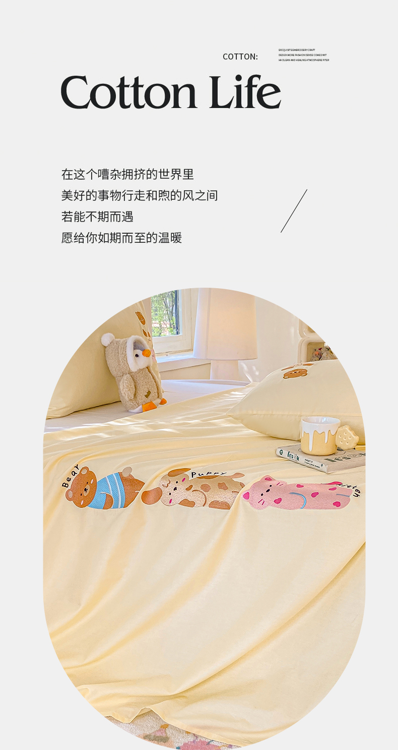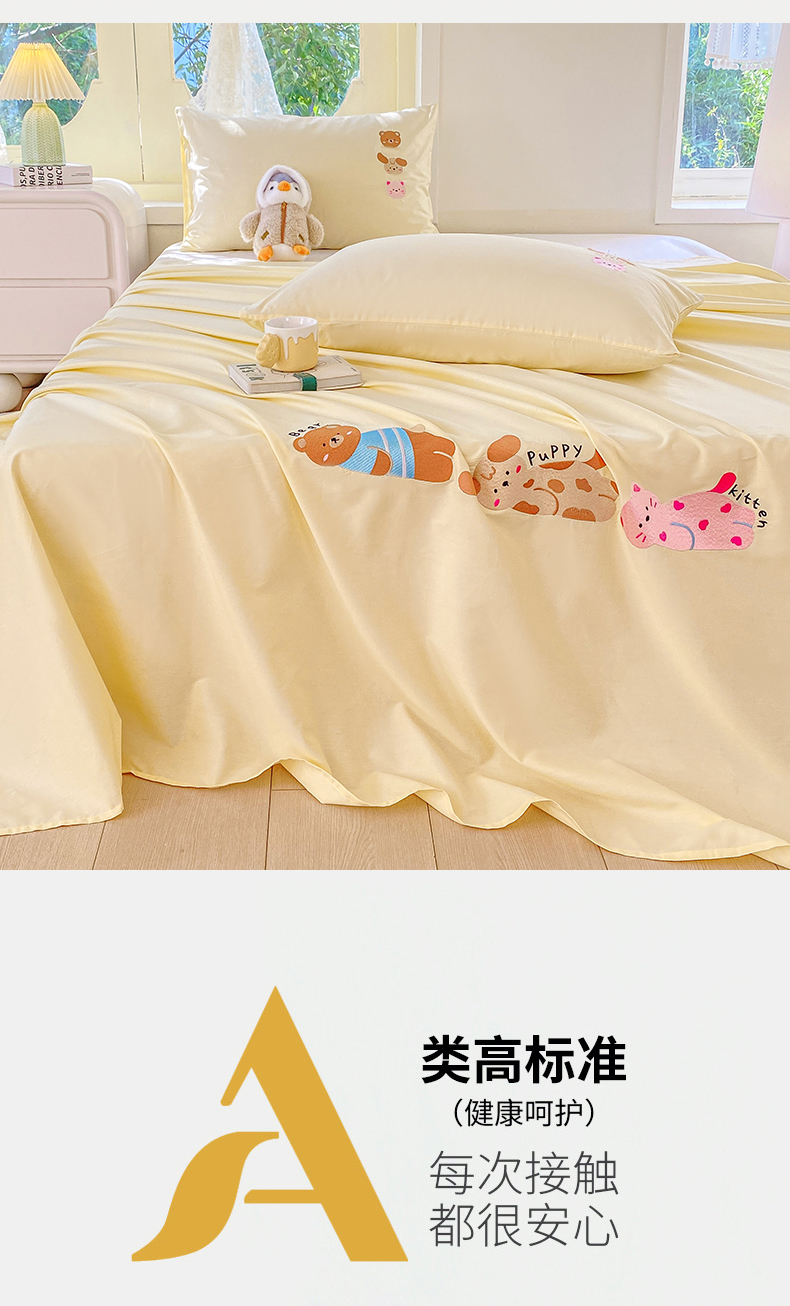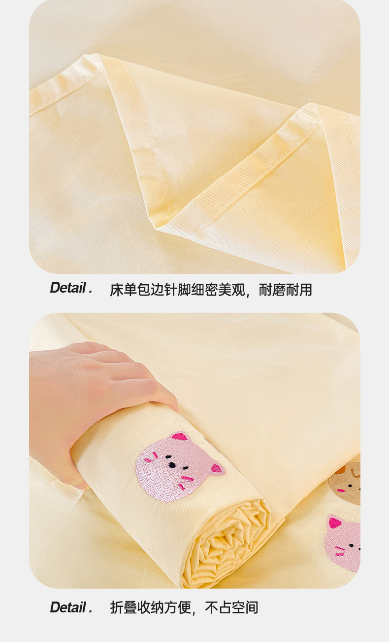 灰鲸 2025新款全棉刺绣大床床单-懒懒小憩系列 懒懒小憩-黄