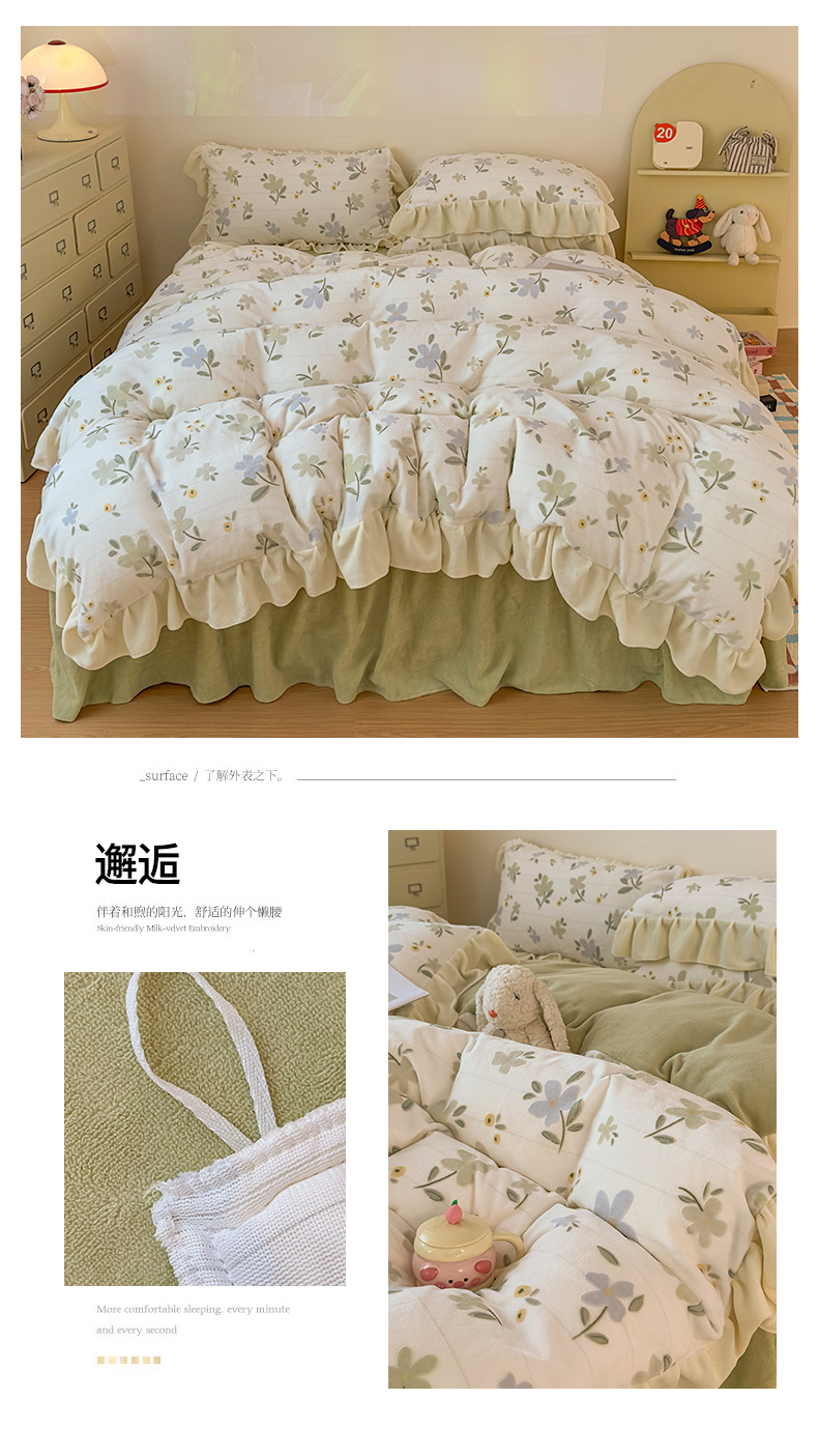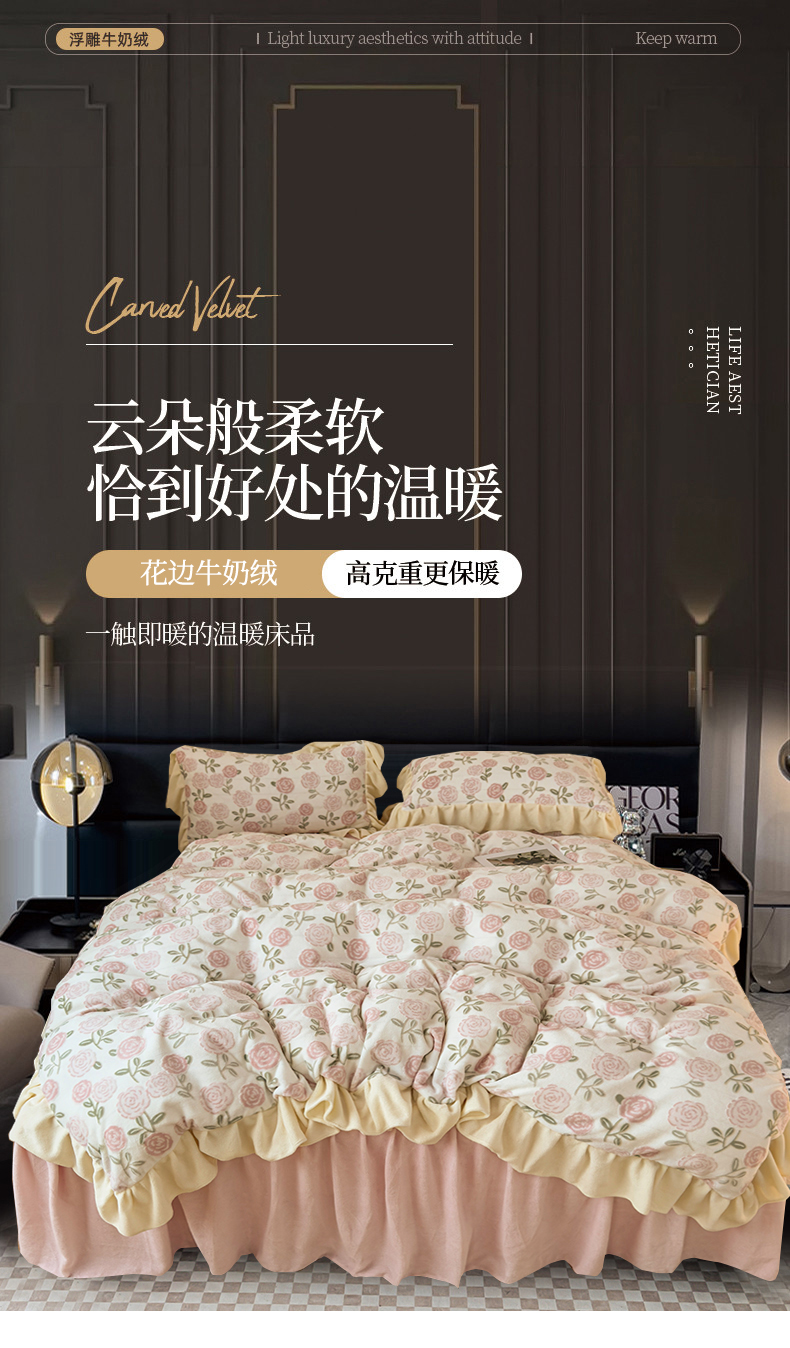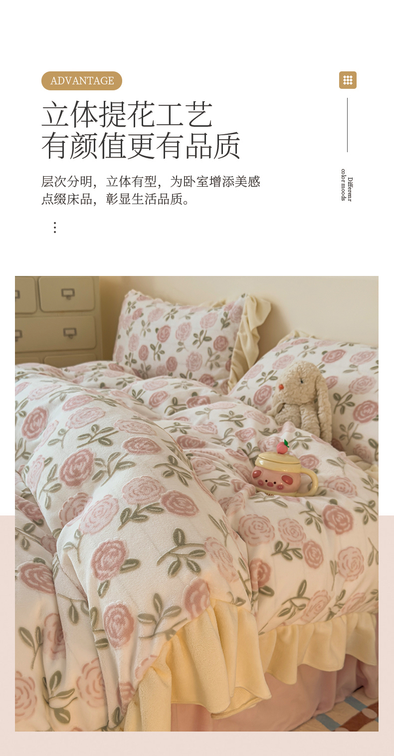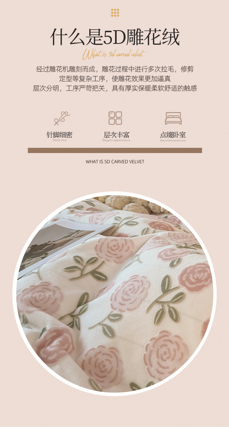 当前位置: 91家纺网 > 商品网购 > 床品套件 > 四件套 > 牛奶绒四件套 > KA家纺 2025新款秋冬床裙款着色烂花立体雕花牛奶绒四件套 爱莎粉