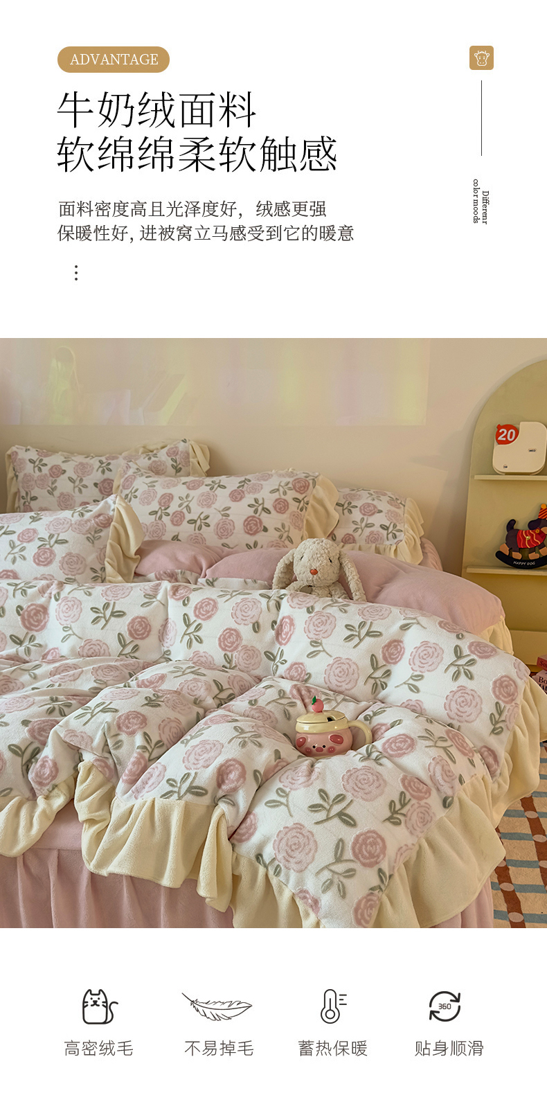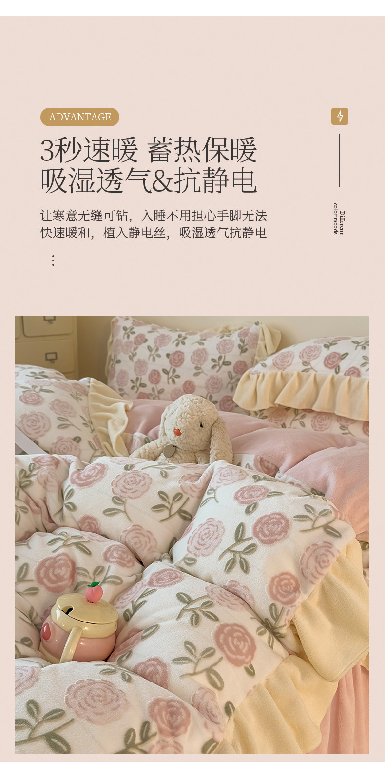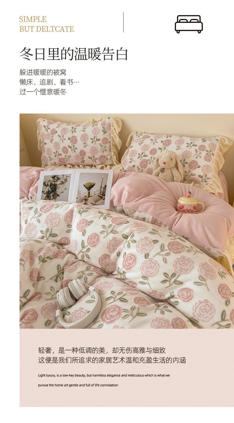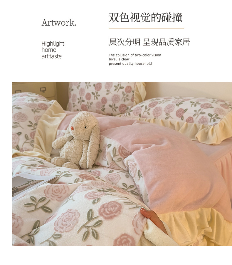 当前位置: 91家纺网 > 商品网购 > 床品套件 > 四件套 > 牛奶绒四件套 > KA家纺 2025新款秋冬床裙款着色烂花立体雕花牛奶绒四件套 爱莎粉