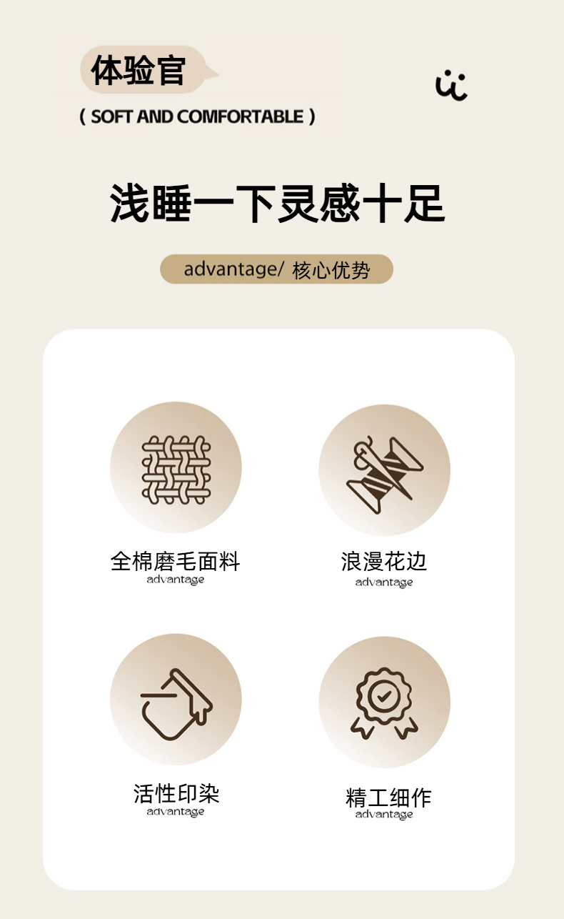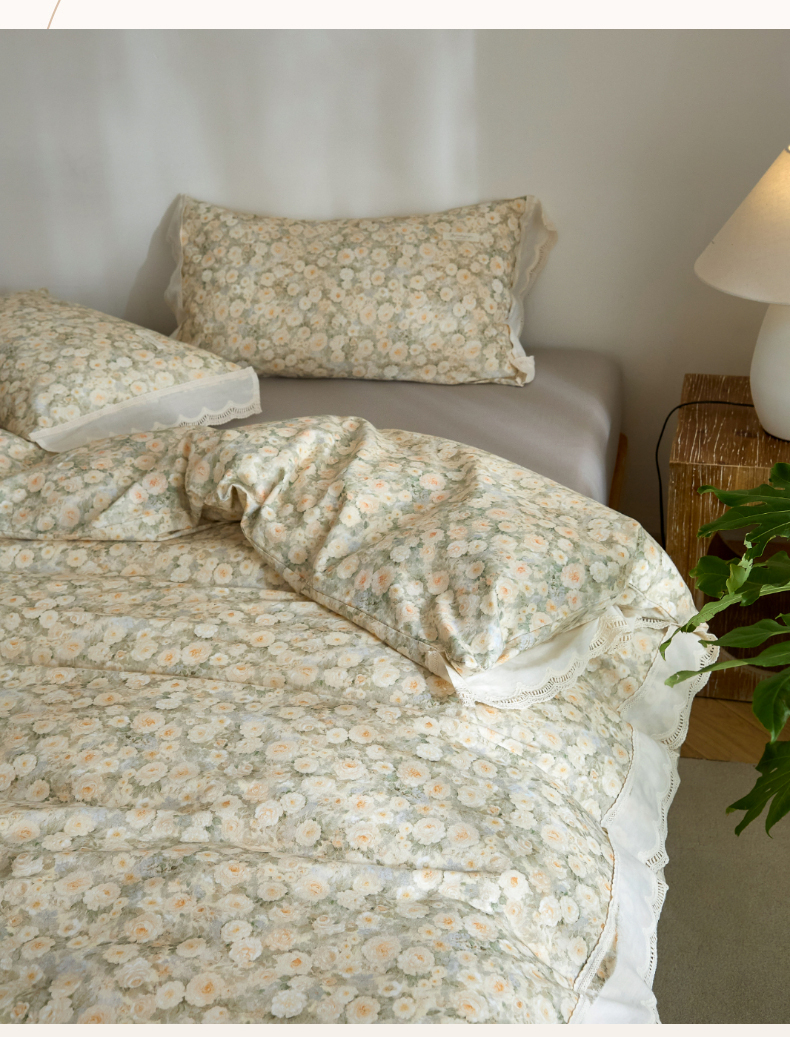 商品名称:大彩家居 2025新款全棉纯棉水洗磨毛四件套 米雾花影
