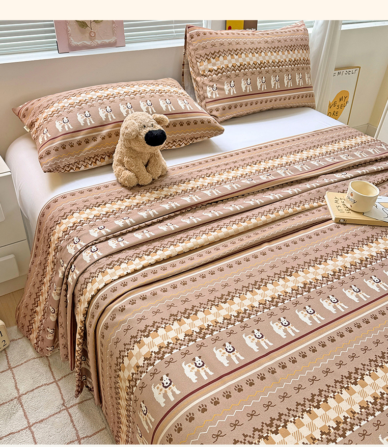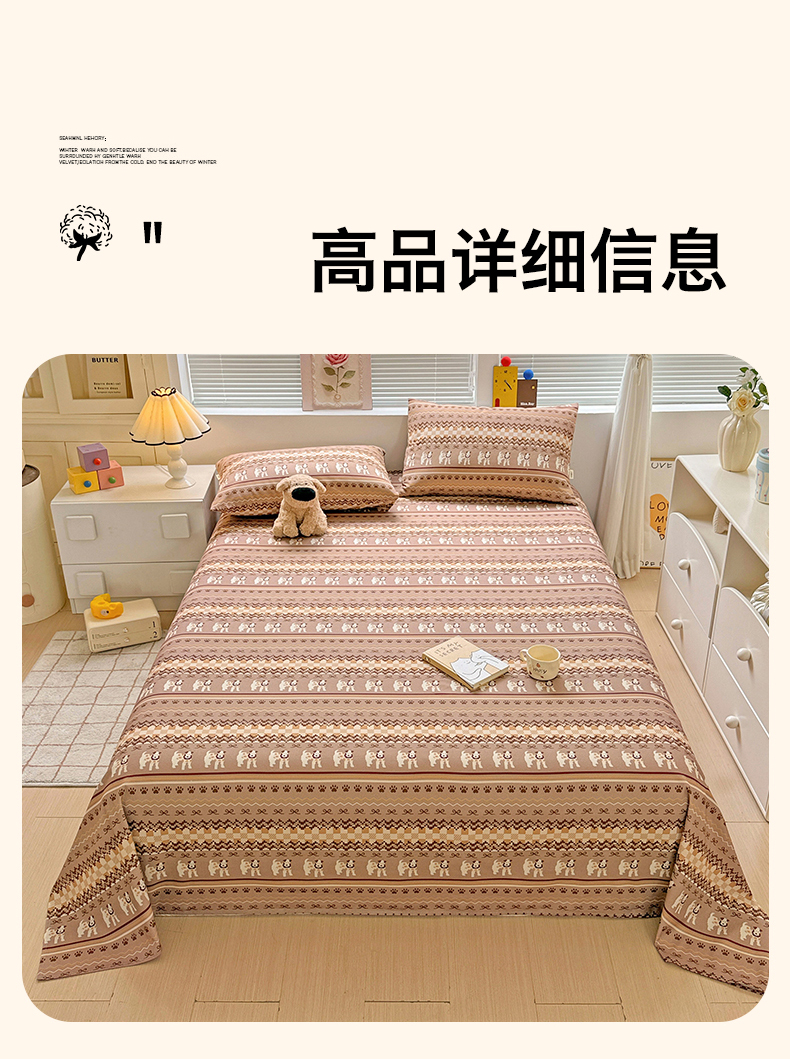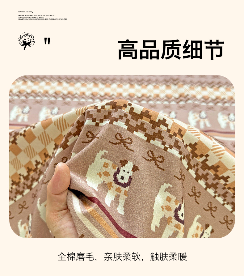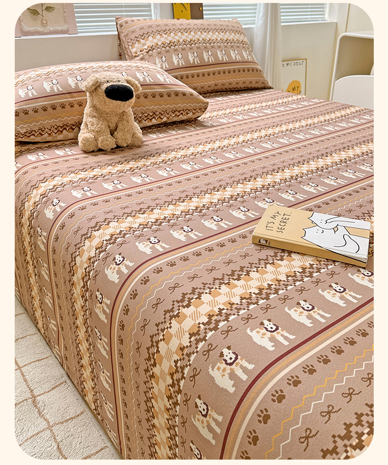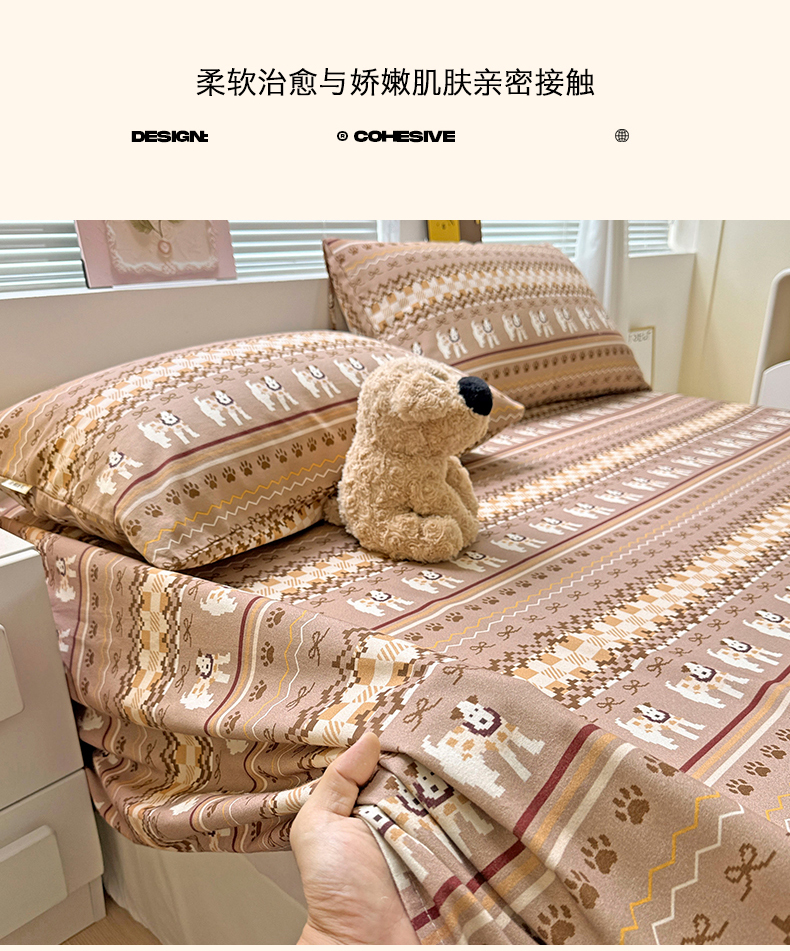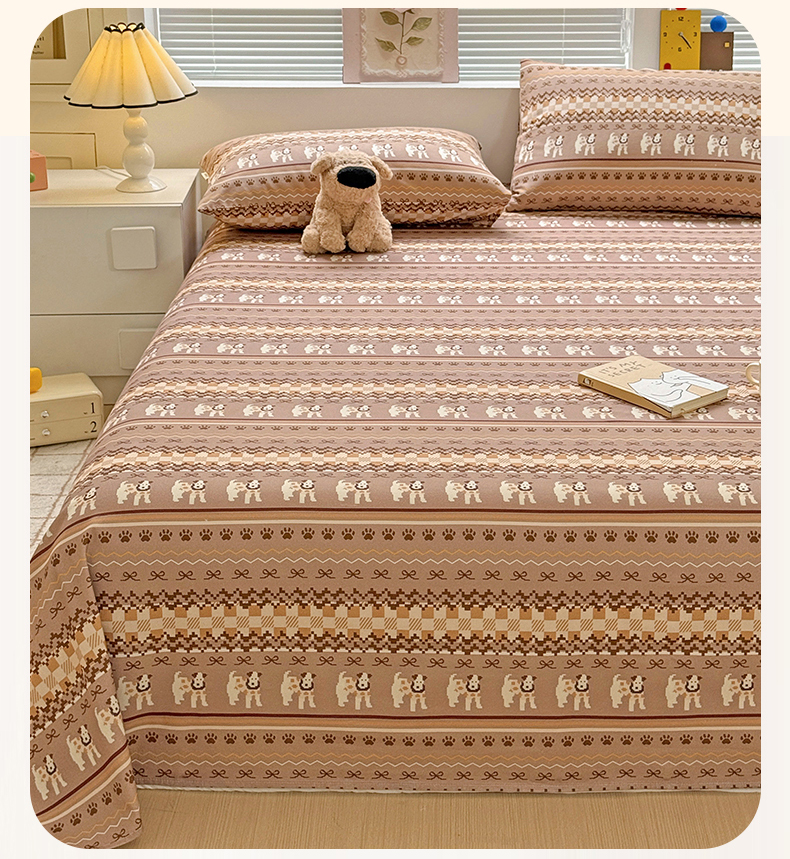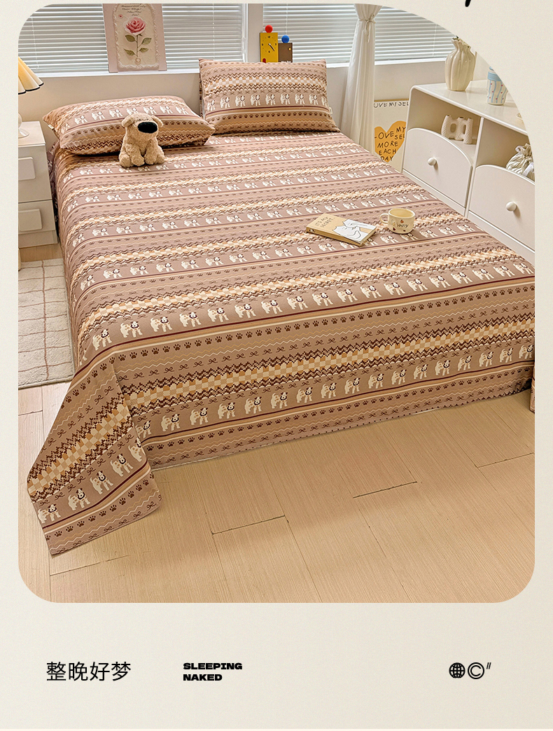 • 91家纺网 家纺一手货源 找家纺 名兮家居 2025秋冬新款100%全棉纯棉磨毛单床单 床单单件 蝴蝶结小狗-咖