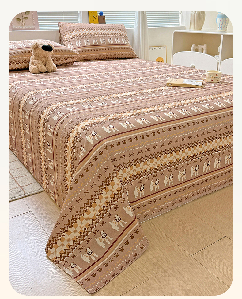 名兮家居 2025秋冬新款100%全棉纯棉磨毛单床单 床单单件 蝴蝶结小狗-咖