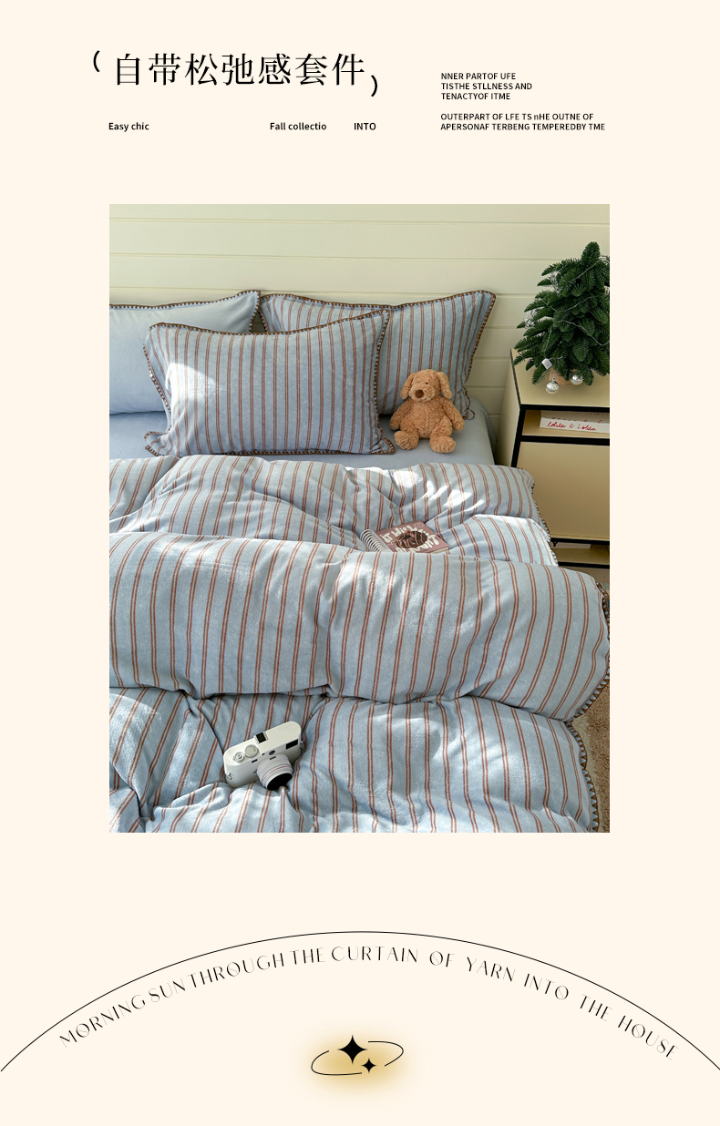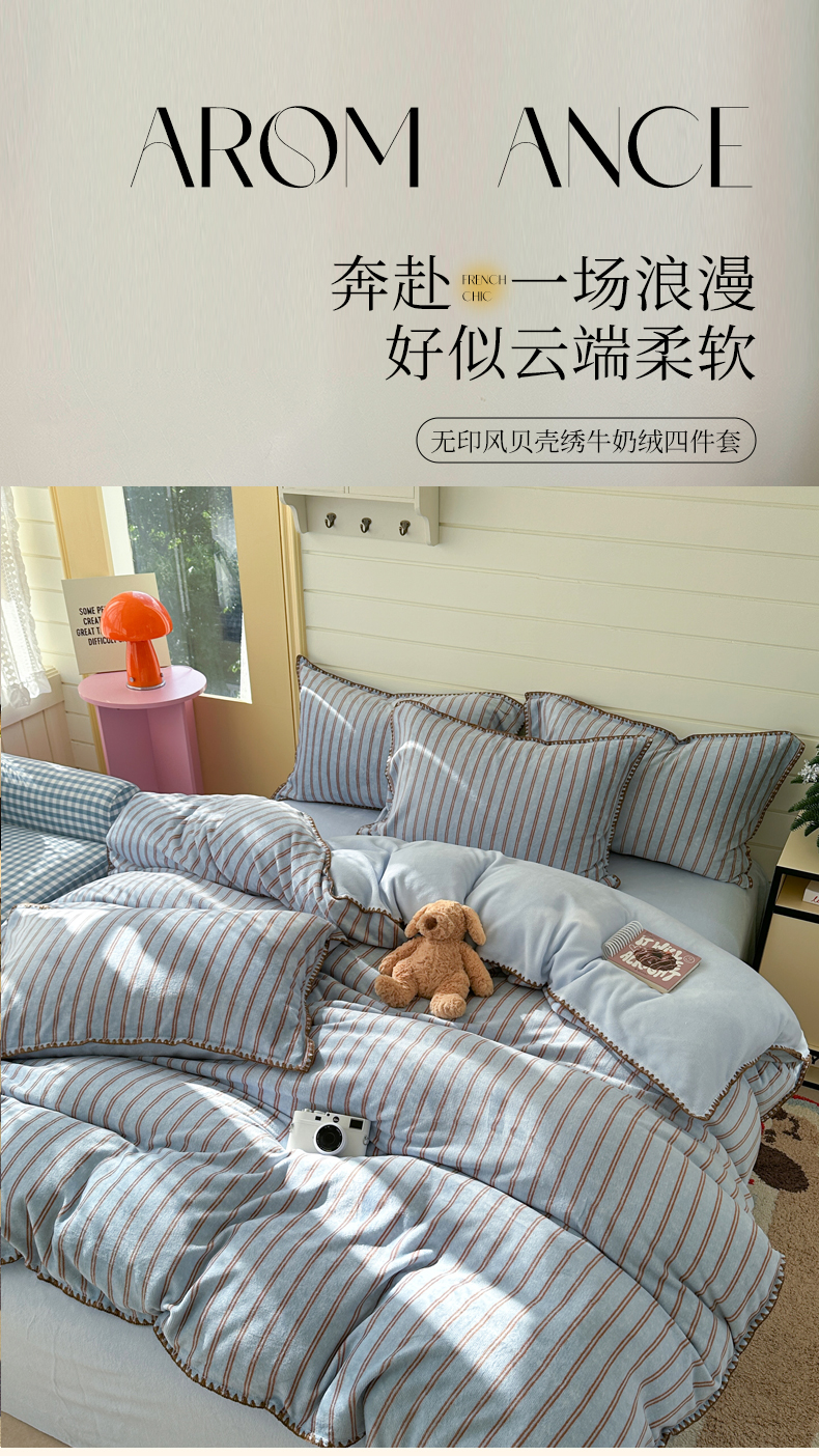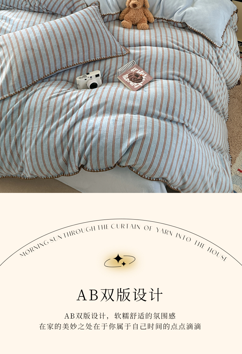 当前位置: 91家纺网 > 商品网购 > 床品套件 > 四件套 > 牛奶绒四件套 > 三朵家纺 2025新款无印风三角针牛奶绒四件套 蓝调条纹