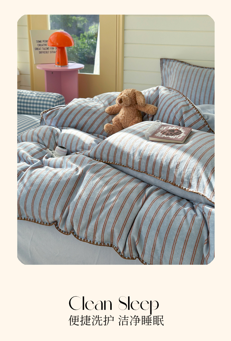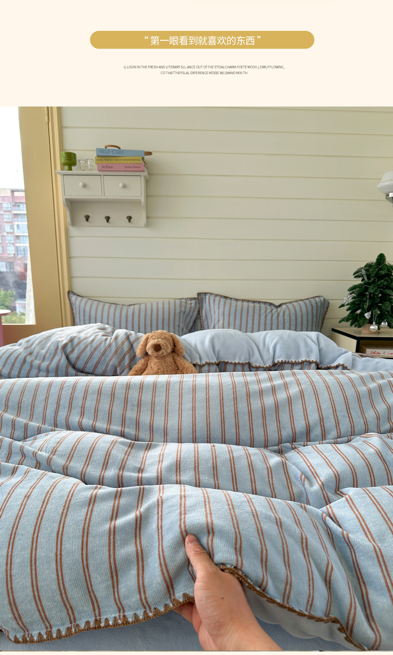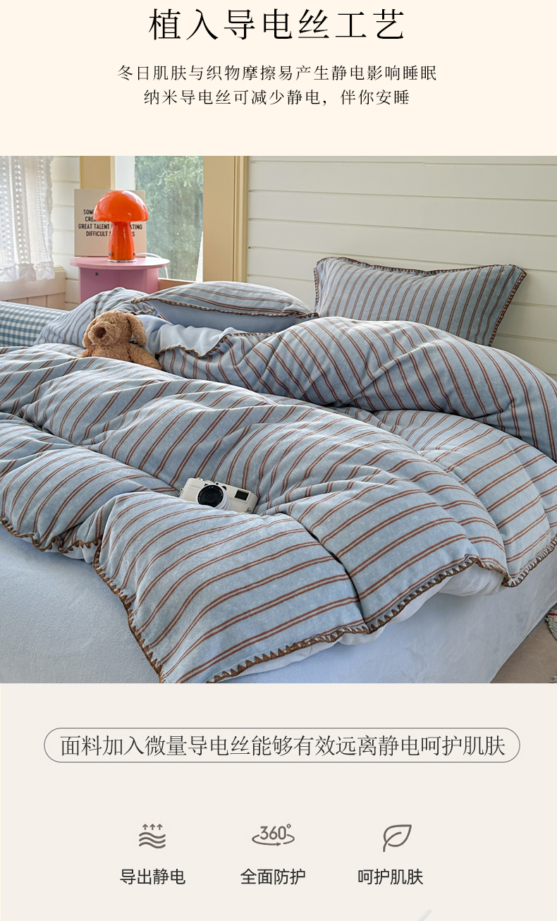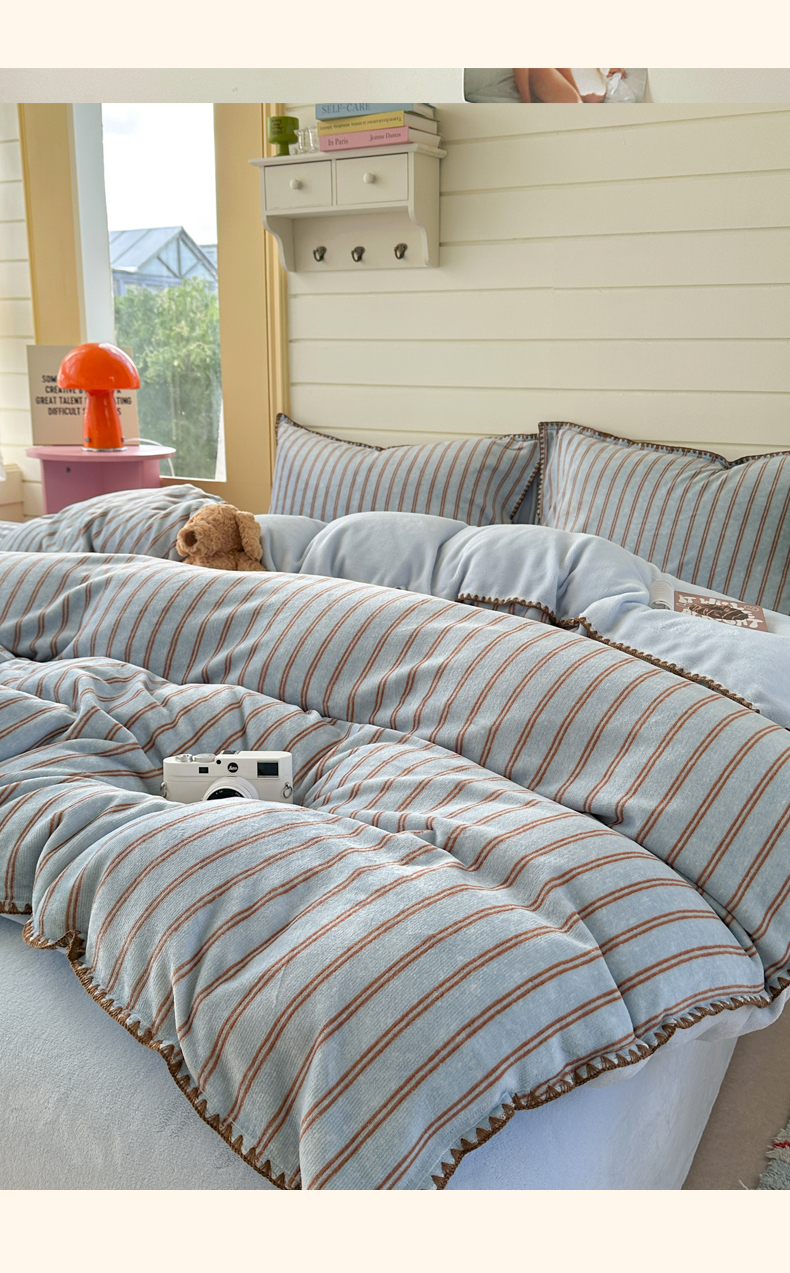 当前位置: 91家纺网 > 商品网购 > 床品套件 > 四件套 > 牛奶绒四件套 > 三朵家纺 2025新款无印风三角针牛奶绒四件套 蓝调条纹
